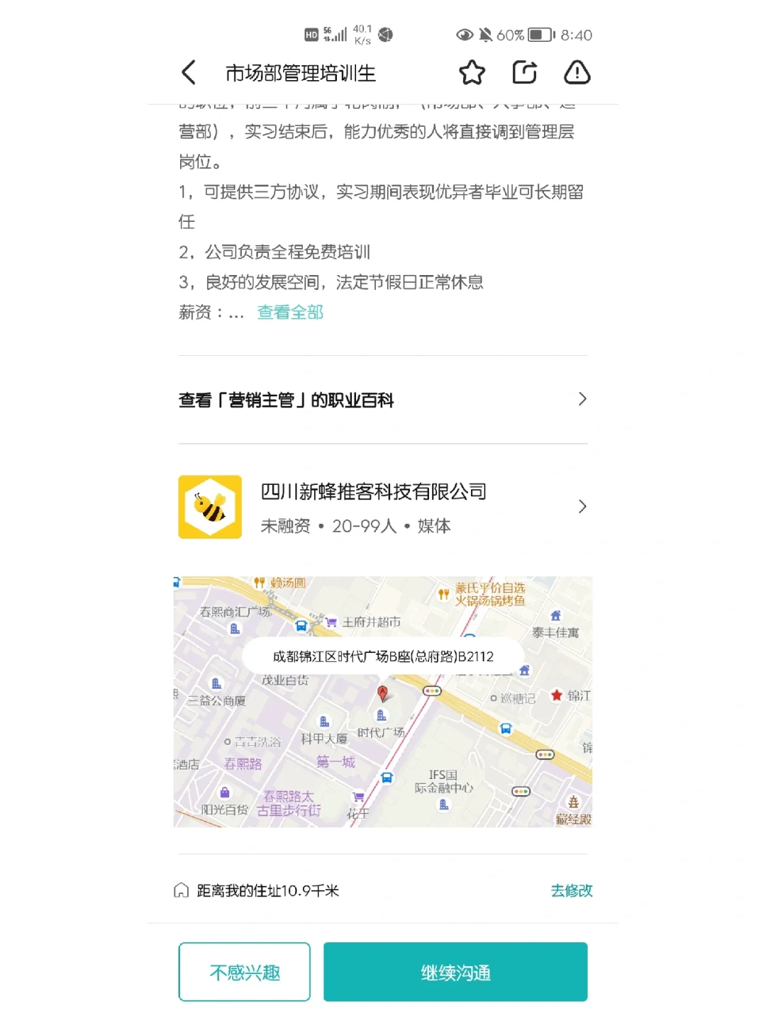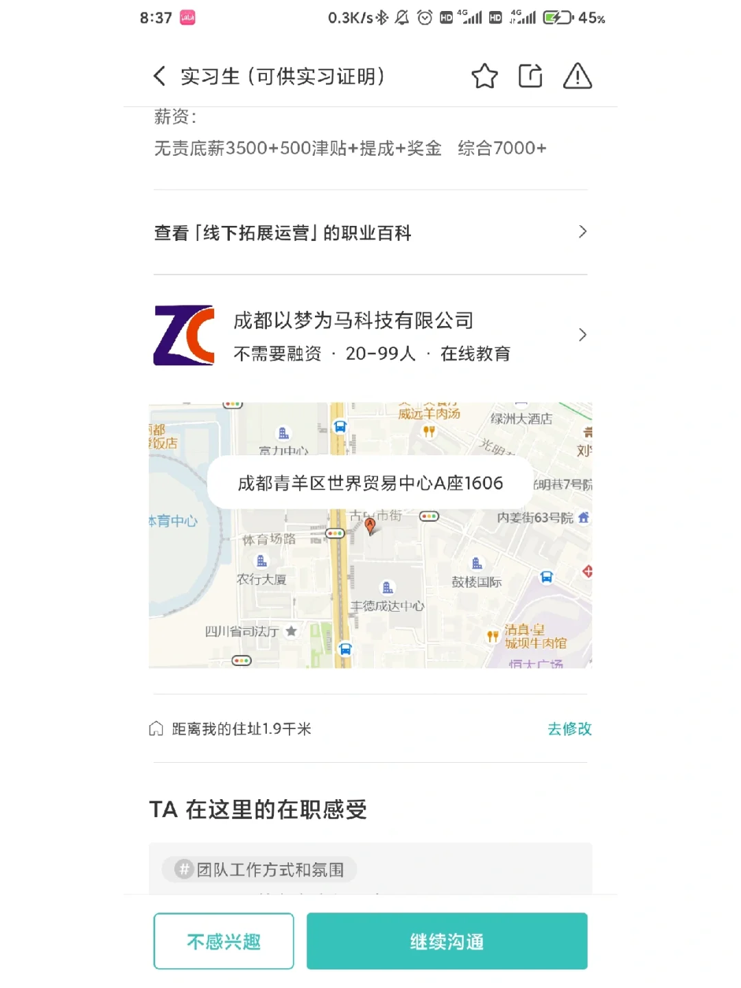 面试时候说的工资,跟培训时候说的完全不一样。不管你是不是想在市场部工作,第一个月就会在市场部去推广,让别人扫码小程序,说是时间自由,但是站一天至少八小时以上。反正很坑