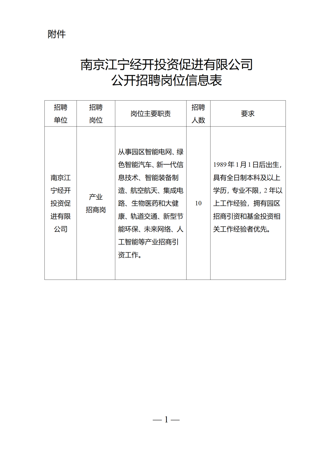 1 报名条件 1.政治坚定、遵纪守法、品行端正,身体健康、形象气质良好,性格开朗、吃苦耐劳、敢于创新,团队合作意识强,能适应投促公司高强度、快节奏的工作环境。 2.具有全日制本科及以上学历。获得国外大学学历学位的,须经国家教育部留学服务中心认证通过。 3.应聘者应为1989年1月1日以后出生。 4.专业不限,具有2年以上工作经验,拥有园区招商引资和基金投资相关工作经验者优先。 2 报名时间及方式 (一)报名和网上资格审查(只接受网上报名) 1.时间:2024年2月28日—2024年3月11日。 2.报名路径:在电脑端搜索网址:www.njgcrc.gov.cn,使用“我的南京”app扫码认证登录后,填写个人信息及完善简历,浏览查看职位详情,投递简历。 应聘人员应如实提供个人信息和材料,弄虚作假者,一经查实,尚未聘用的,取消聘用资格;已经聘用的,予以解聘。 (二)现场资格审查 网上报名结束后,对初审通过人员进行现场资格审核(具体以实际通知为准)。所需准备材料: 1. 本人签名的应聘人员登记表2份(需张贴照片),请至南京高层人才网本次招聘简章下方附件下载。 2. 身份证、学历学位证书、职称证书、执业资格证书,以及相关荣誉奖励等证明的原件和复印件。 3. 《学历证书电子注册备案表》一份(登陆中国高等教育学生信息网(http://www.chsi.com.cn)打印)。 4. 社会保险缴费清单一份。 现场资格审查结束后,将组织符合条件应聘人员进行考试。未通过资格审查的人员,不再另行通知。 3 招聘流程 (一)考试 根据拟参加竞争的专业岗位和人选情况,采用笔试、面试方式进行综合评价。 1.笔试:笔试开考比例不低于1:5,考察内容包括岗位所需公共知识、专业知识及综合素质等。 2.面试:入围面试比例不低于1:3,主要考察应聘人员的能力素质、个性特征等与应聘岗位的适应程度。 对背景调查合格人员安排入职体检。 4 相关待遇 聘用人员与南京江宁经开投资促进有限公司签订劳动合同,提供具有竞争力的市场化薪酬。 5 岗位表 6 附件 点击“阅读原文”下载附件 应聘人员登记表.doc 南京江宁经开投资促进有限公司公开招聘岗位信息表.docx |