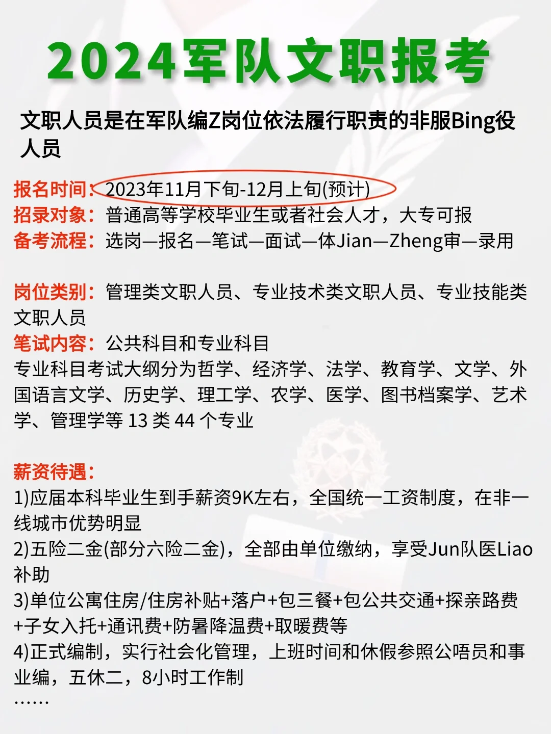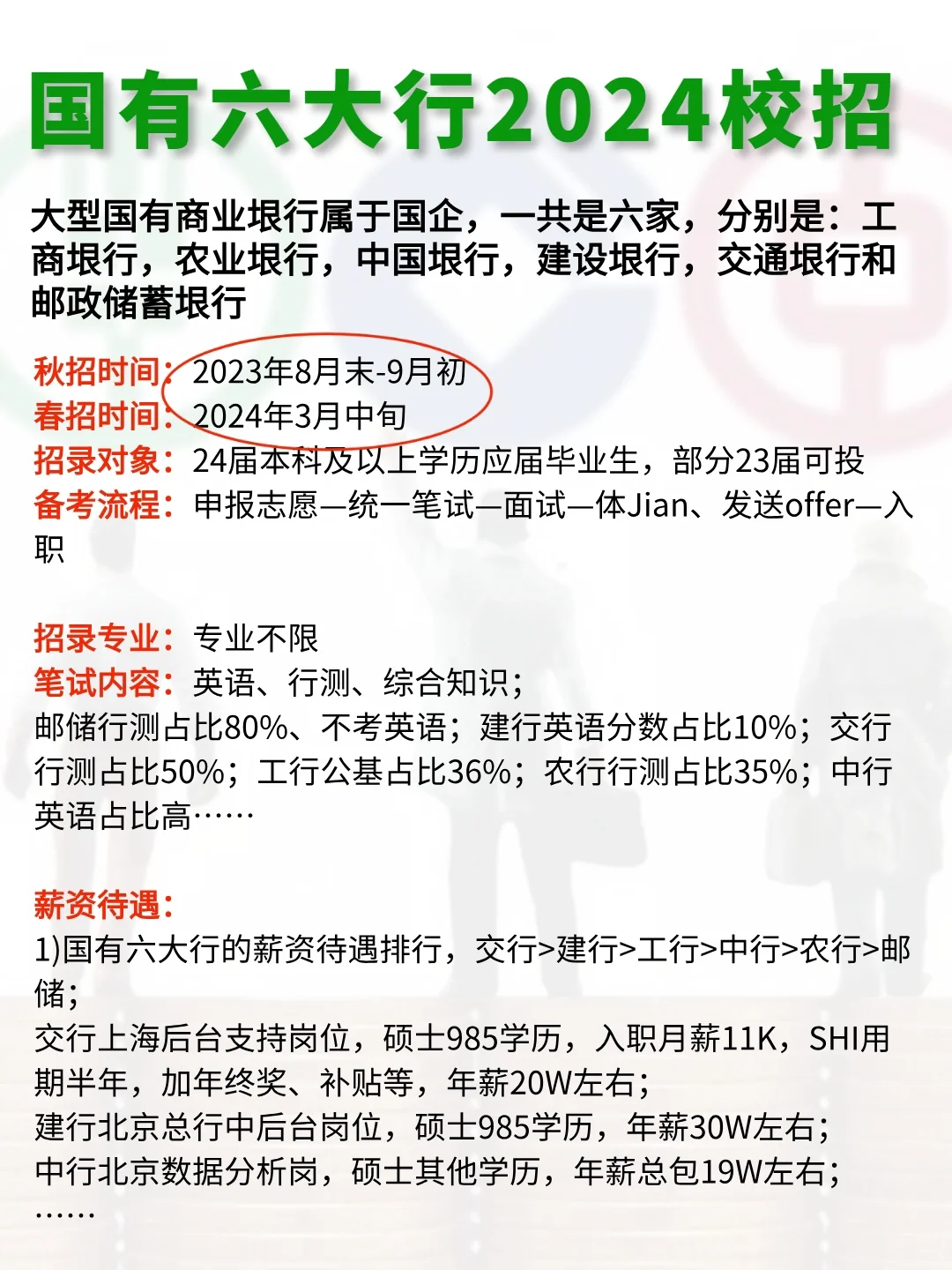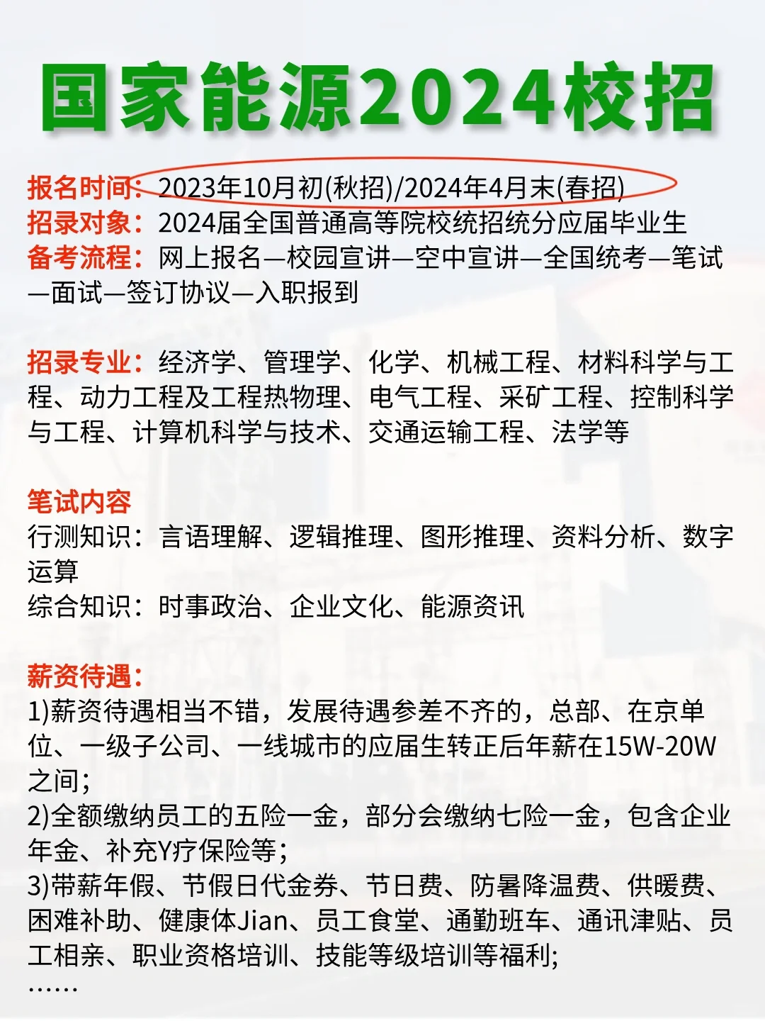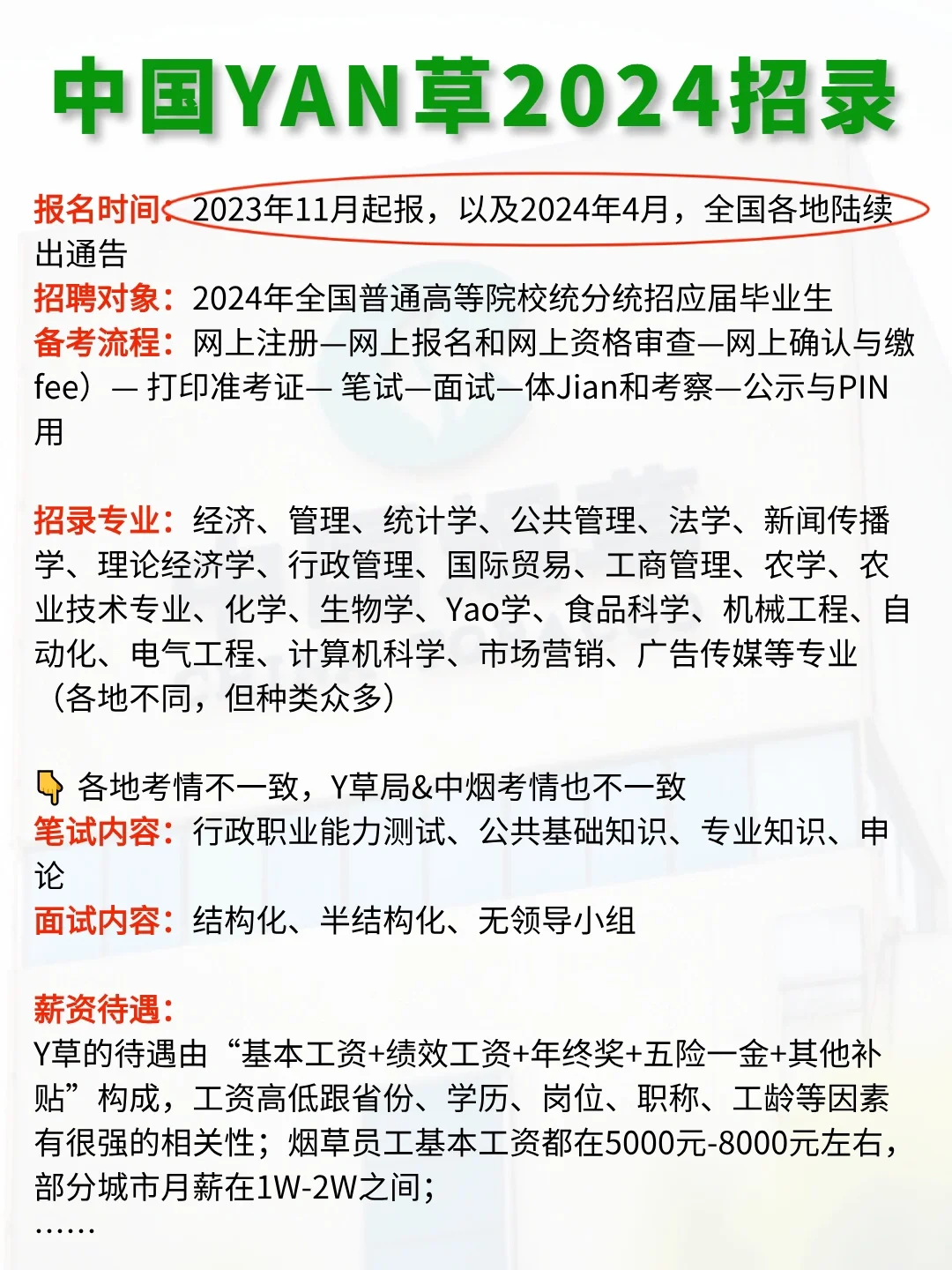 除了公务员,2024年待遇超好的7大躺赢单位💰 如果觉得考公过于卷,考研又怕考不上,想过工作稳定薪资不低的work-life balance的生活,那姐妹们不如看看这7家待遇超好的体制单位👇 一、中国YAN草 招录人数:1W+人! 报名时间:2023年11月起报,以及2024年4月,全国各地陆续出通告 招录对象:2024年全国普通高等院校统分统招应届毕业生 备考难度:3.5颗星(全国各地烟草局都能报,互不干扰) 二、2024国家电网校招 招录人数:4W+人! 报名时间:2023年9月(提前批)/11月(一批)/2024年3月(二批) 招录对象:2024届博士研究生、硕士研究生、大学本科毕业生、专科生 备考难度:五颗星(应届生一次机会) 三、军队文职 招录人数:3.3W+人! 报名时间:2023年11月下旬-12月上旬(预计) 招录对象:普通高等学校毕业生或者社会人才,大专可报 备考难度:三颗星(新兴就业机会,待遇好) 四、国有六大行 招录人数:12W+人! 秋招时间:2023年8月末-9月初 春招时间:2024年3月中旬 招录对象:24届本科及以上学历应届毕业生,部分23届可投 备考难度:三颗星(总部难,分行竞争Ya力相对较小) 五、中石油/中石化/中海油 招录人数:2.2W+人! 秋招时间:2023年9月初(中石油)/9月中旬(中石化)/10月中旬(中海油) 春招时间:2023年4月末(中石油)/3月初(中海油) 招录对象:面向2024届大专/高职/本科/硕士/博士等毕业生 备考难度:三颗星(子公司众多,总部竞争激烈,中石化一年只招一次) 六、国家能源 招录人数:1.1W+人! 报名时间:2023年10月初/2024年4月末 招聘对象:2024届全国普通高等院校统招统分应届毕业生 备考难度:三颗星(春招、夏招、秋招三次机会) 七、中国铁路公司 …… 📝近来,国企秋招进入爆发期,小编整理了一份《国企岗位信息表》+《国企秋招备考包》,里面包含行测400题、网申模板、备考手册等等详细信息。一定要仔细看哦!🎁 #事业编 #女生必看 #国企 #公务员考试 #体制内 #不懂就问有问必答 #考编 #大学生 #校招 #工作 #秋招 #应届生找工作 #国企工作 |