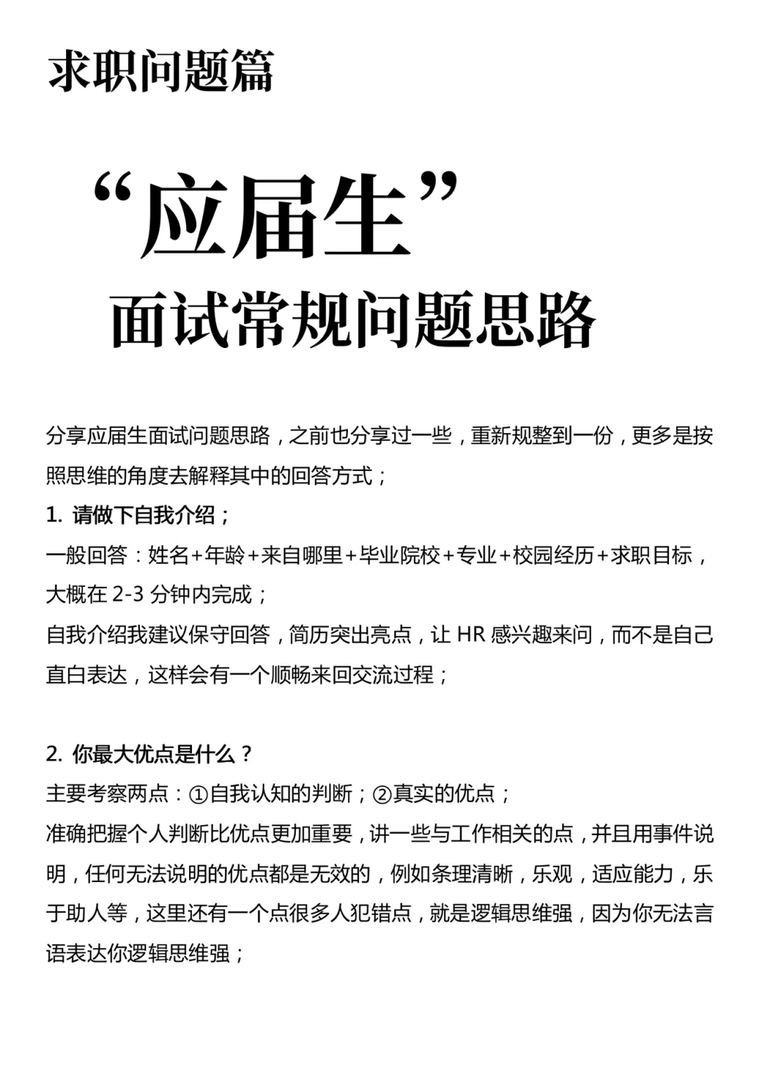[星R]之前分享过一些,这次重新整理一下更多问题,但更多是思路,而不是标准回答。对于应届生来说按照模板化的回答,其实不见得能够脱颖而出,更重要是理清面试的逻辑,并非是一板一眼回答。