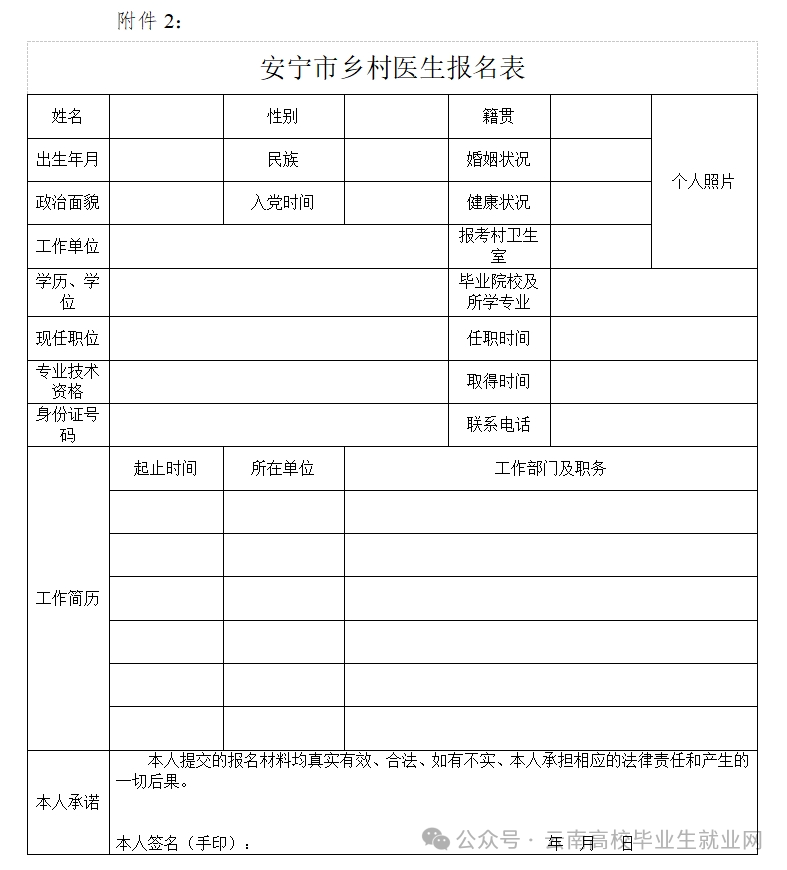 (一)报名:采用网络报名,报名人员将相关报名材料、报名表(附件2),打包后发送到邮箱:anwsjgwk@163.com,压缩包及邮件标题统一为“岗位序号-XX卫生室乡村医生报名-XXX(报名人姓名)”。