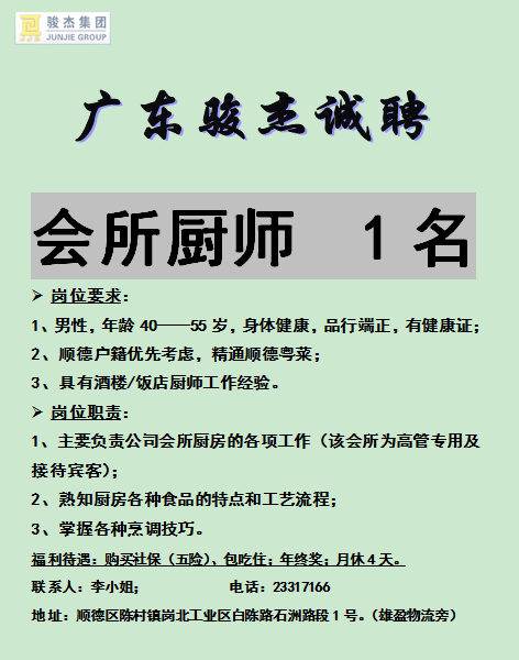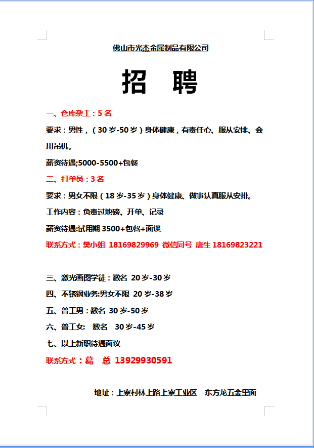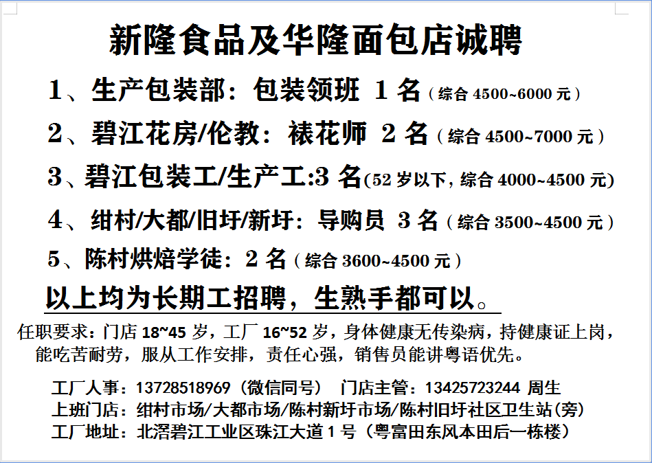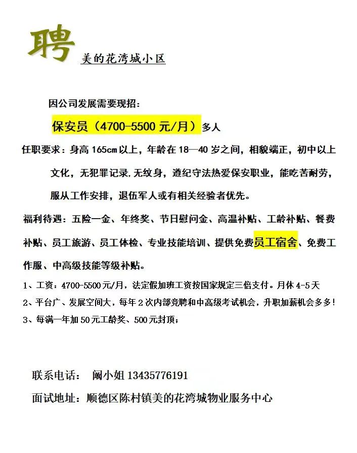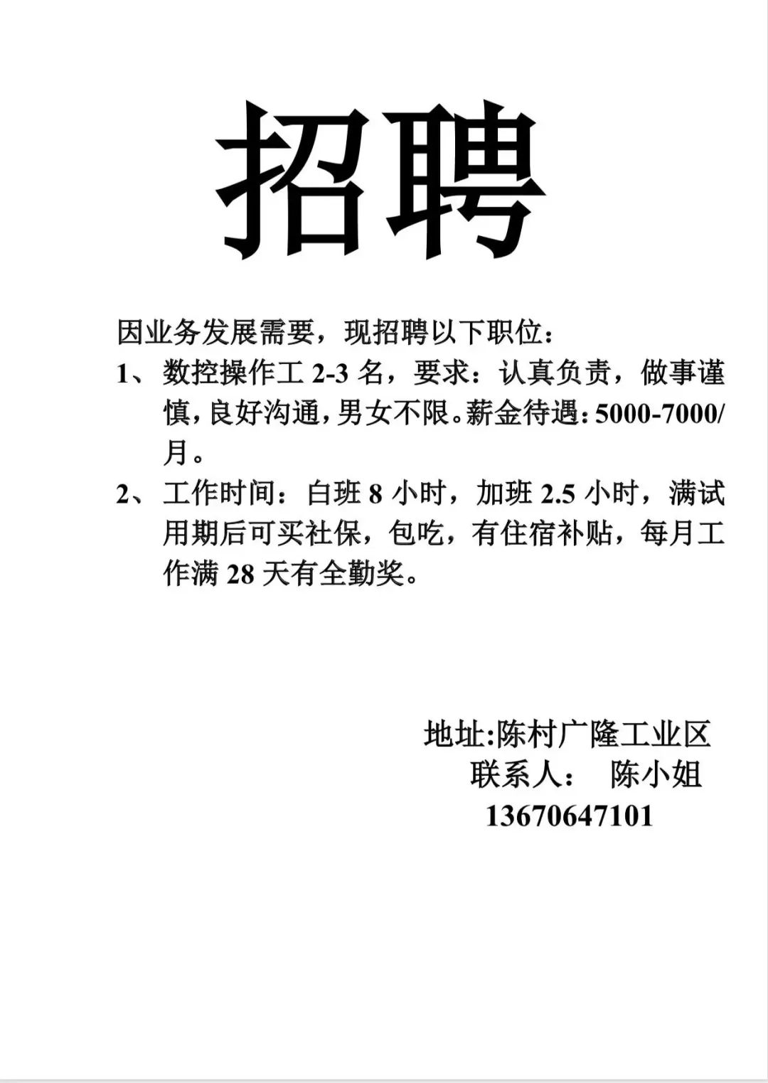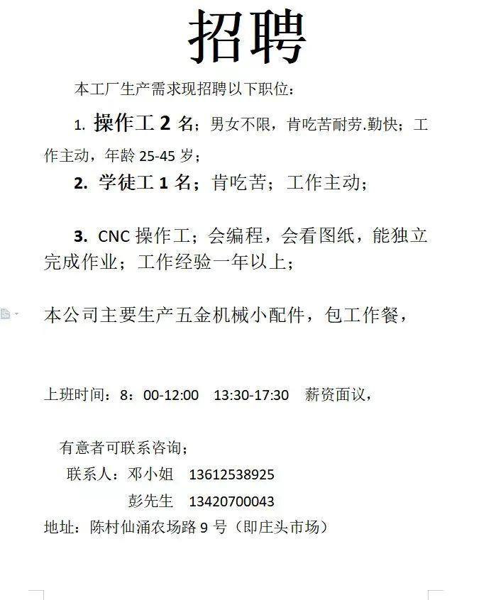 亲,联系时请说明在陈村街坊或陈村招聘看到的,谢谢