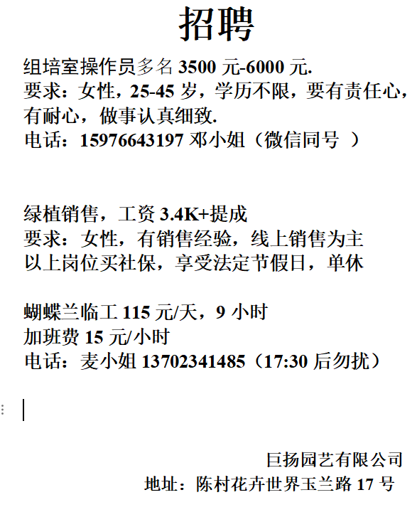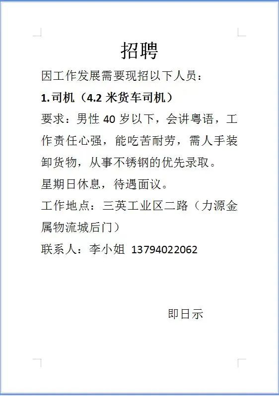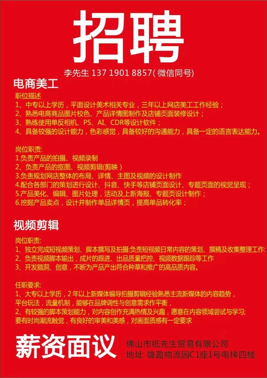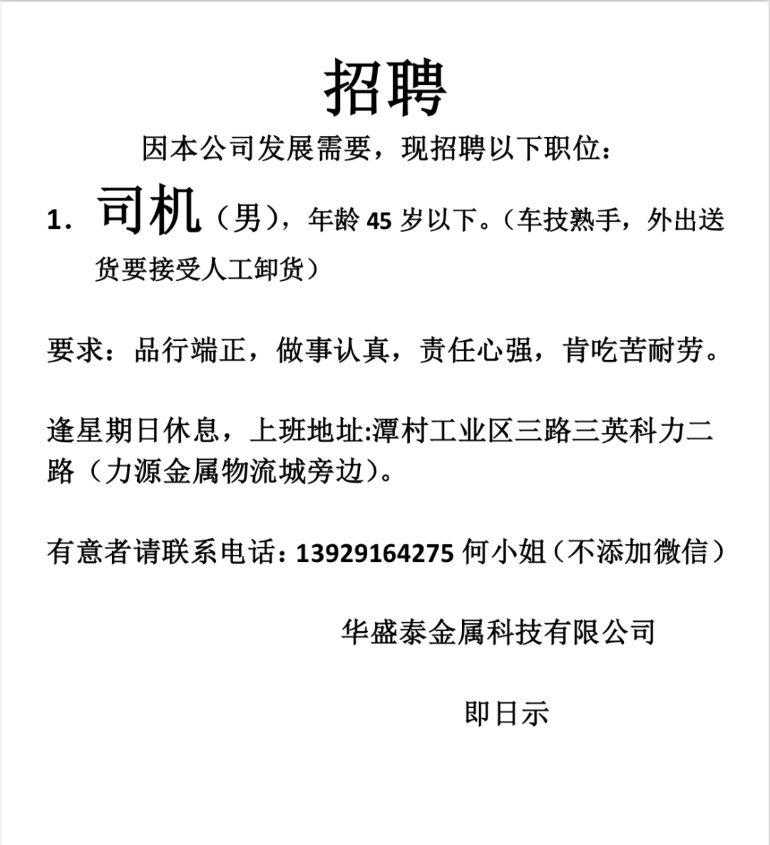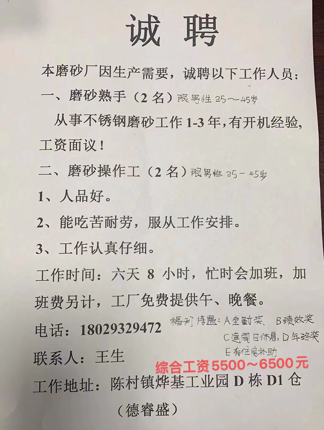 亲,联系时请说明在陈村街坊或陈村招聘看到的,谢谢