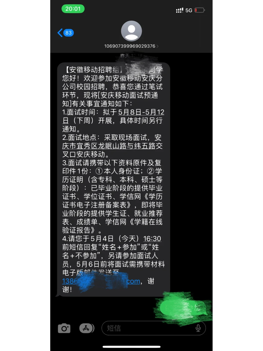有uu们知道安庆移动面试是几轮呀,大概会问一些啥问题,忘记自己报的哪个岗位了,欢迎大家在评论区留言呀[飞吻R]