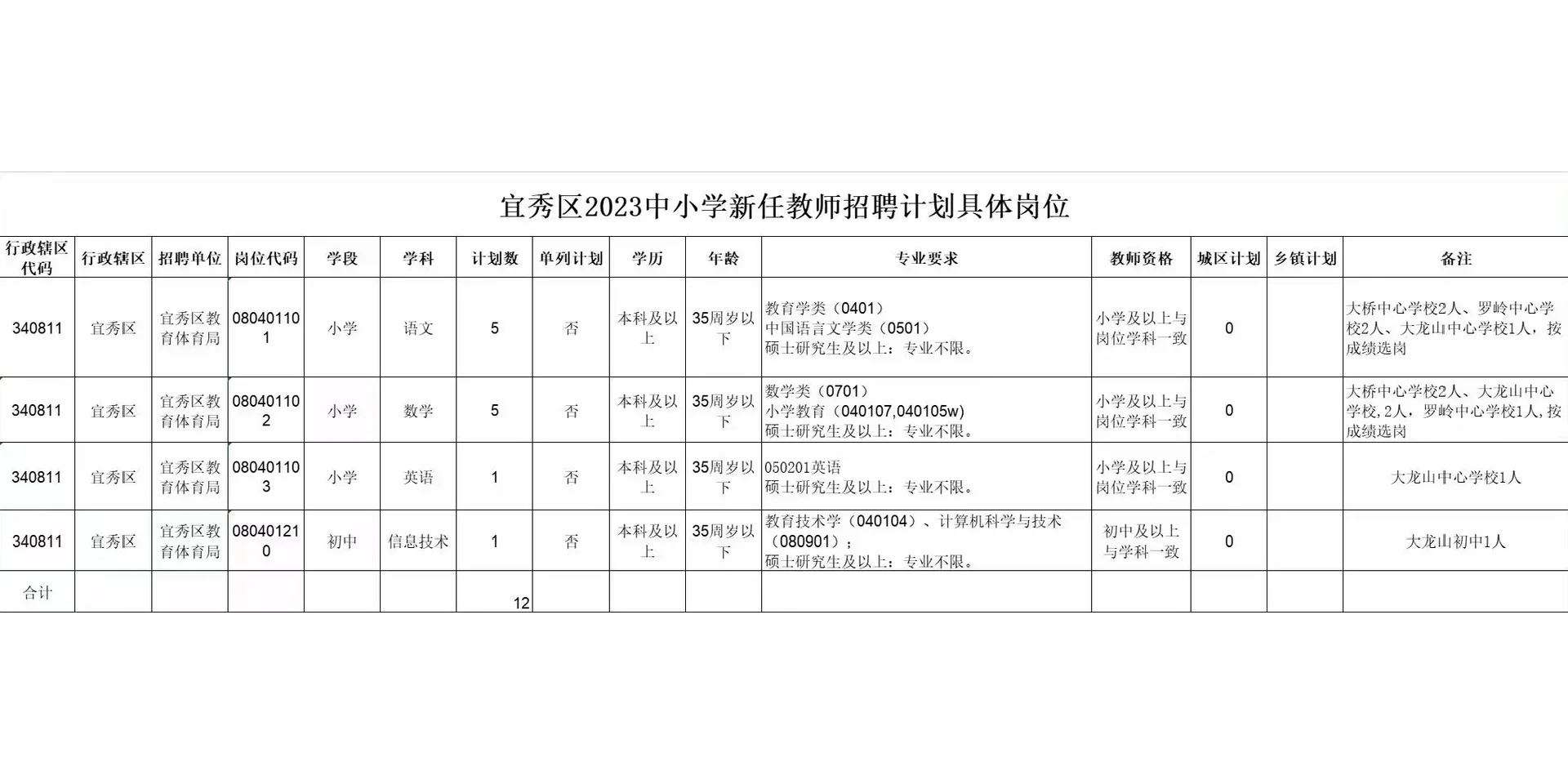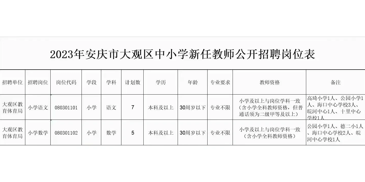 安庆迎江区招聘40人!语数音体学科