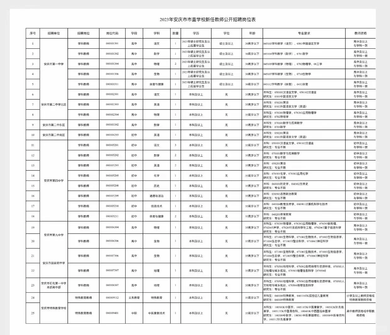 >2023安庆教招