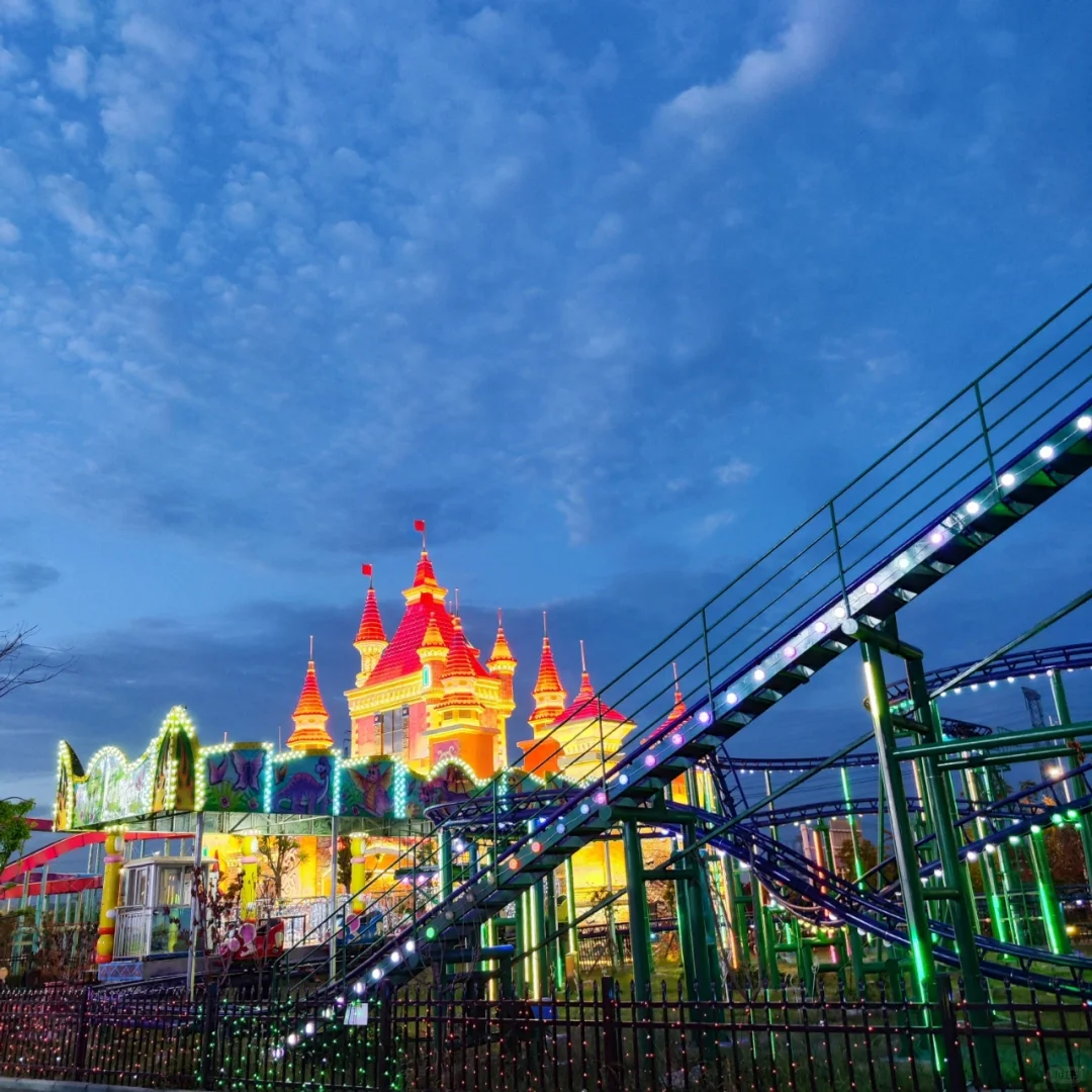 吃完晚饭跟我对象到处散步溜达,上次傍晚,去安庆欢乐世界,带小侄女坐丛林飞鼠的儿童过山车🎢,感觉超级棒