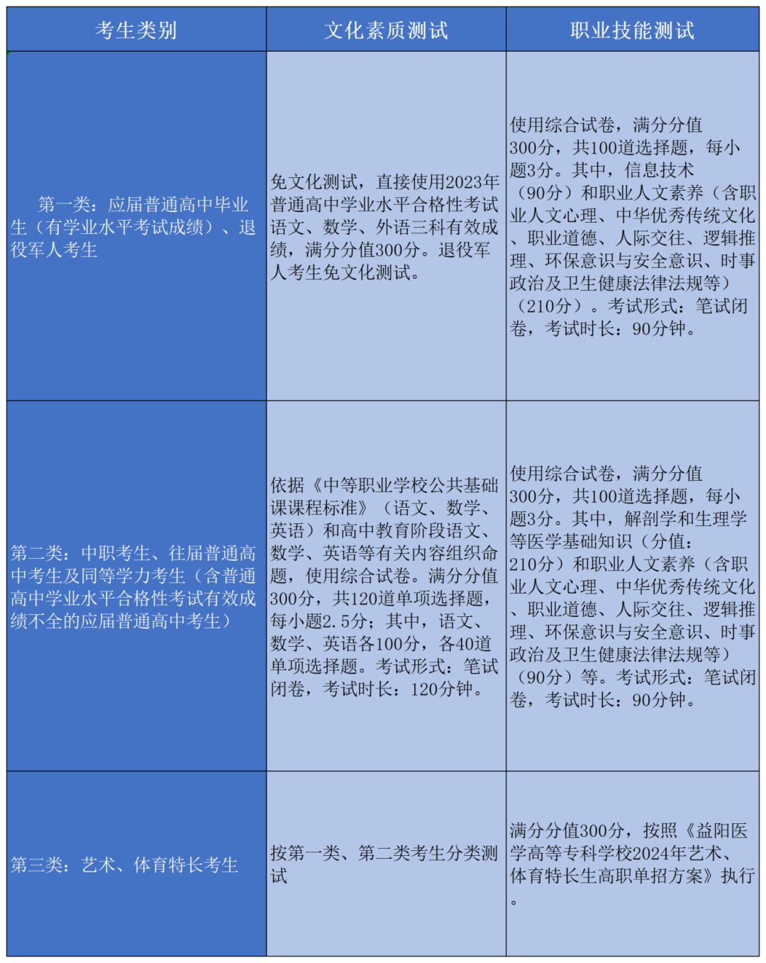答:我校按照“文化素质+职业技能”方式,分类组织考试。具体内容详见下图: