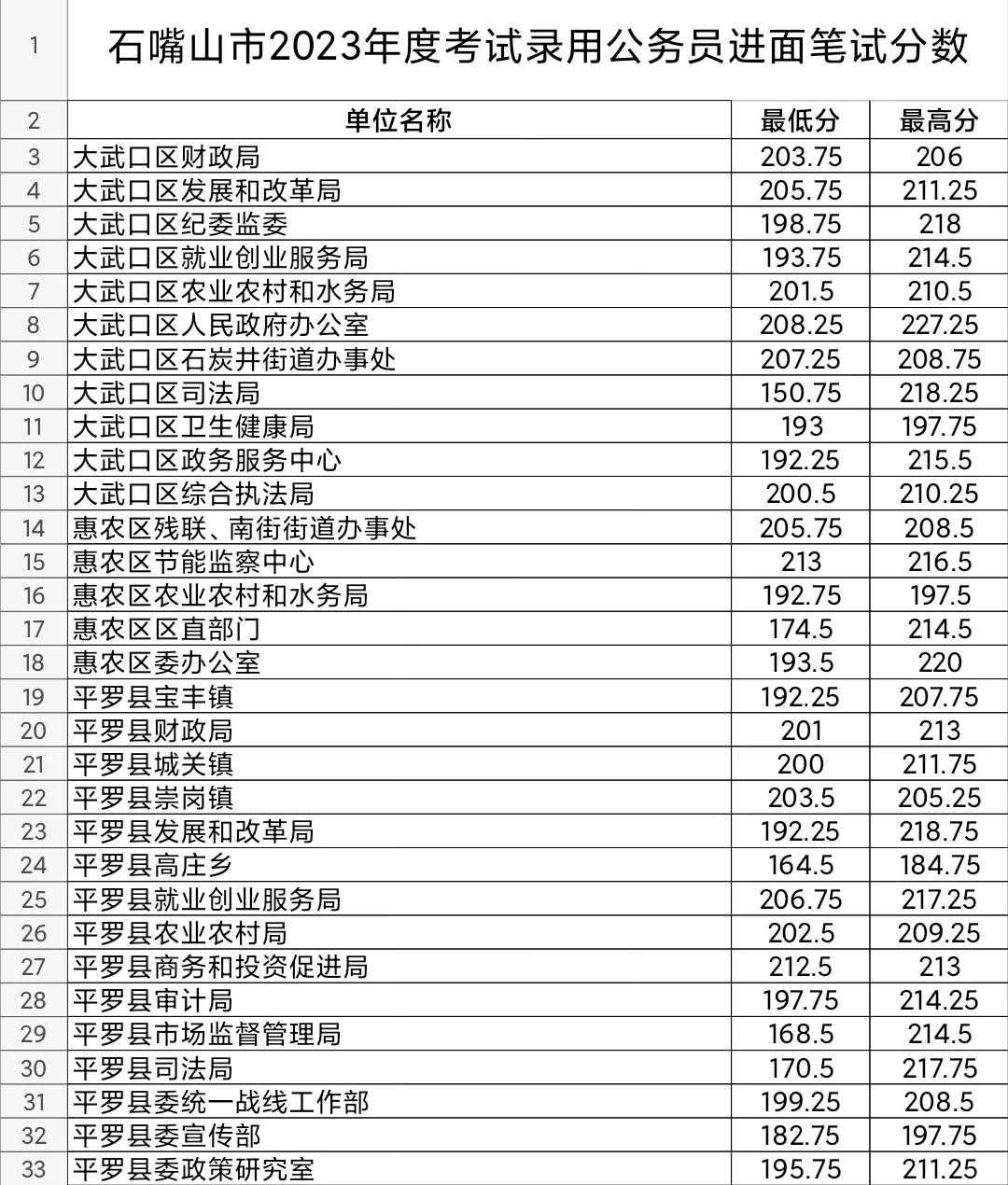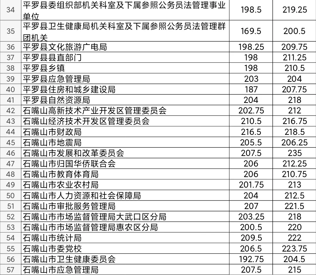 2023宁夏省考石嘴山公务员考试进面笔试分数
