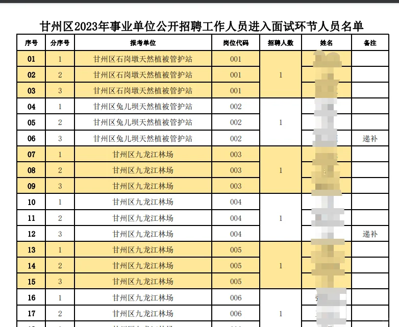 2023年甘肃张掖甘州区事业单位招聘面试人员名单已出