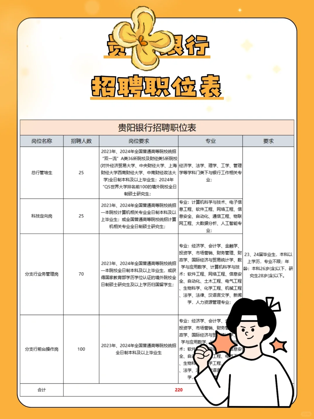 ⚠️⚠️贵阳银行校招220人,网申报名时间只有3天,关键信息快来码住‼️