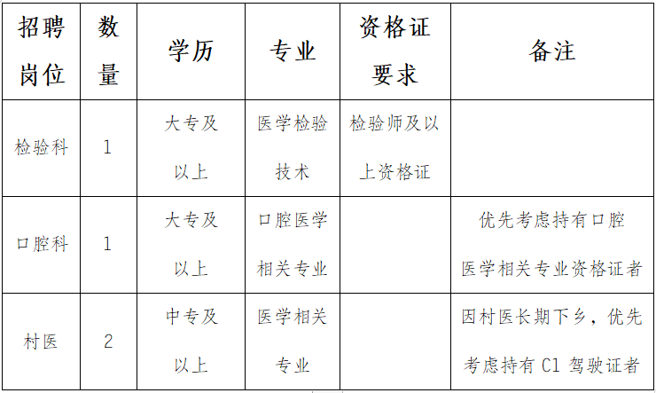 因奎香分院业务需要,经医共体总医院研究决定,面向社会公开招聘编外人员和乡村医生,为确保招聘工作的顺利进行,现将有关事项公告如下: