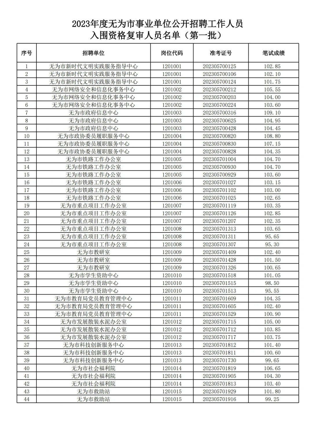 今天,给大家分享一下2023年无为事业单位入围面试分数,可以参考一下![红色心形R][红色心形R]