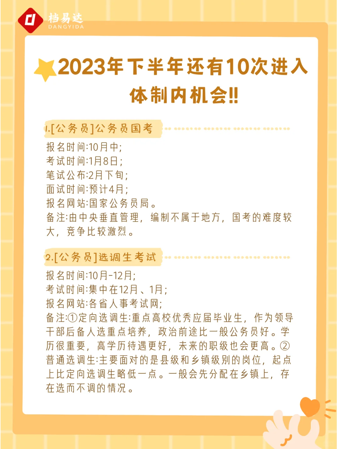 我给大家整理了一下2023年下半年事业单位/公务员单位招聘的时间及注意事项,正在准备或者考虑的大家不要错过了呀。不然又要等到下一年