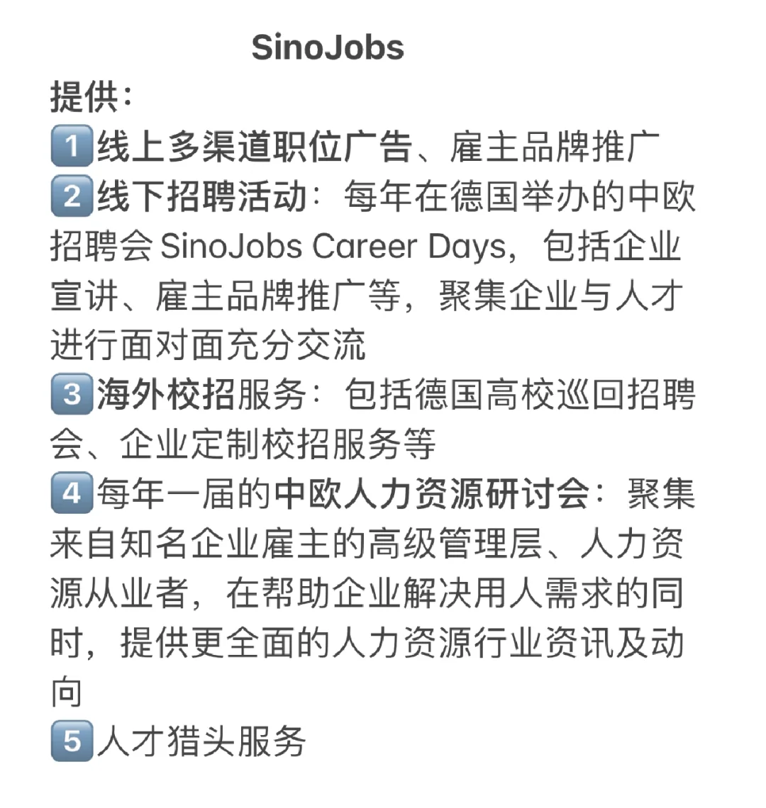 不同于上述提到的平台,Sinojobs专注为企业雇主和中欧人才搭建一个面向大中华区和欧洲招聘与求职的高效平台。
