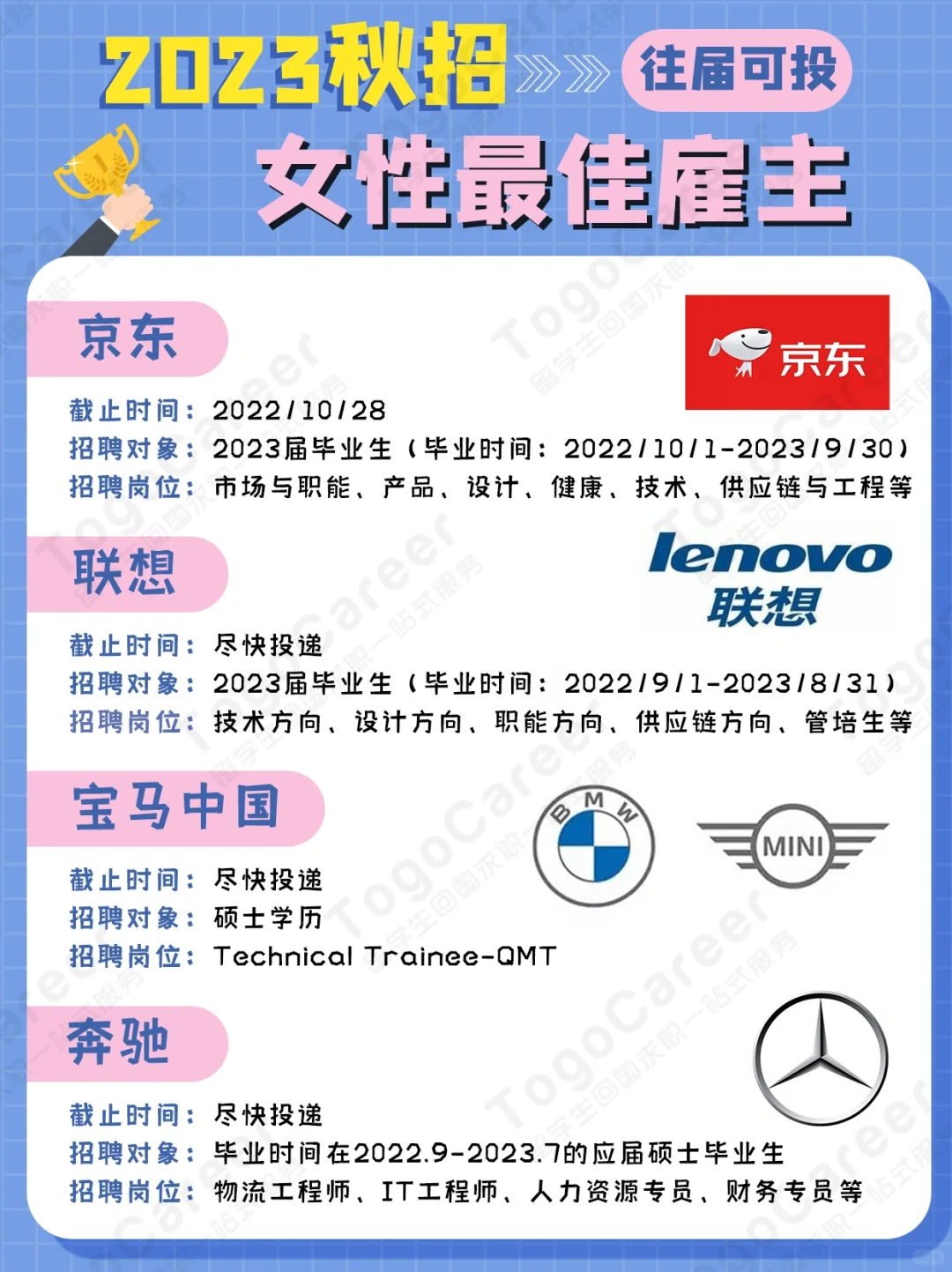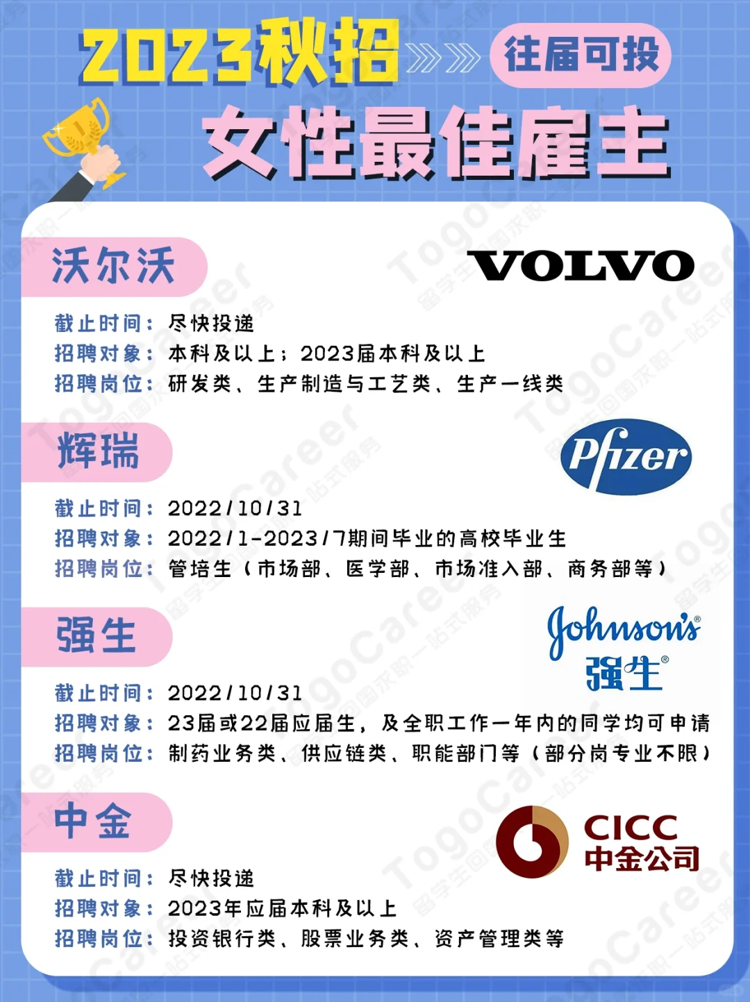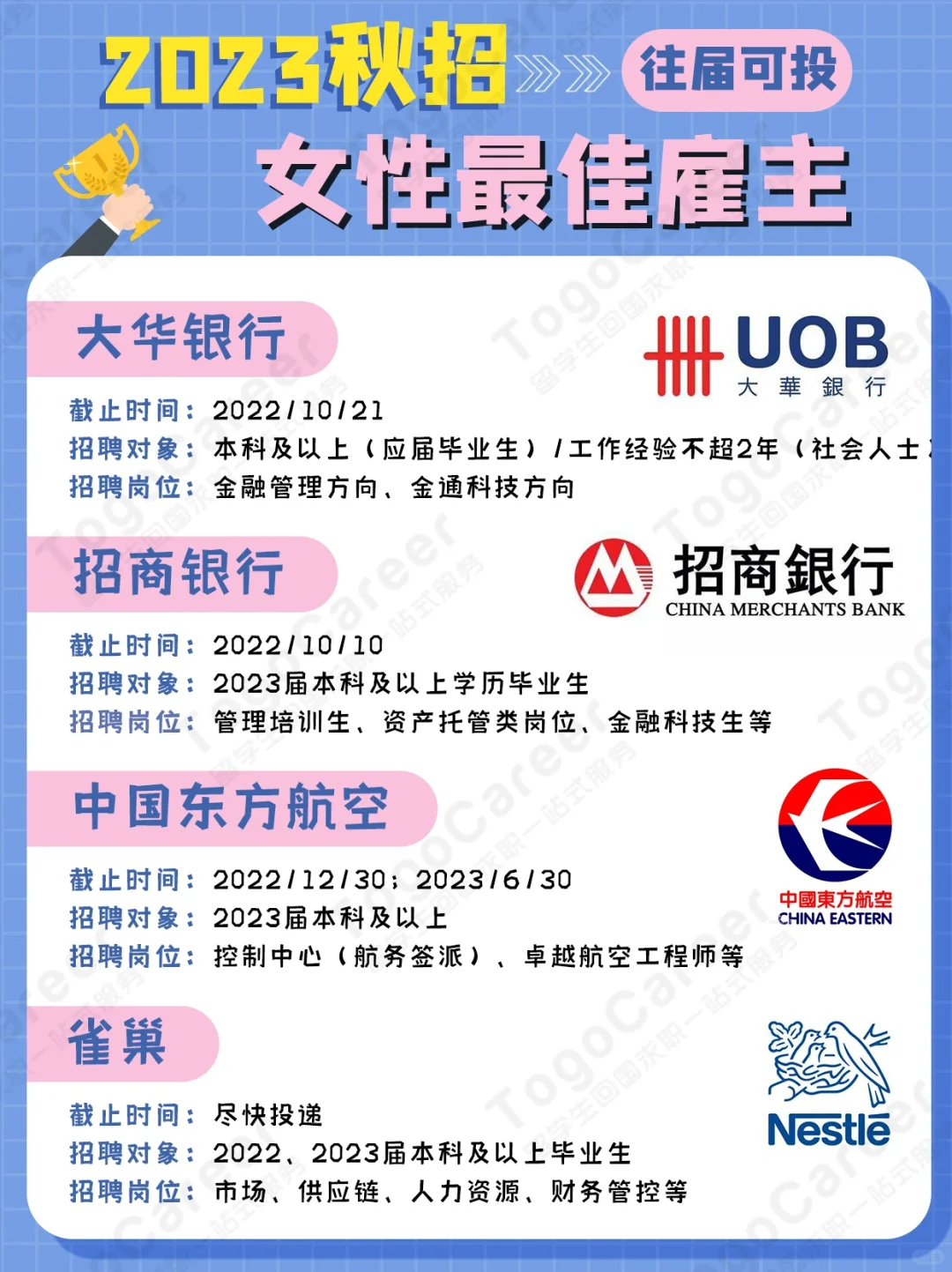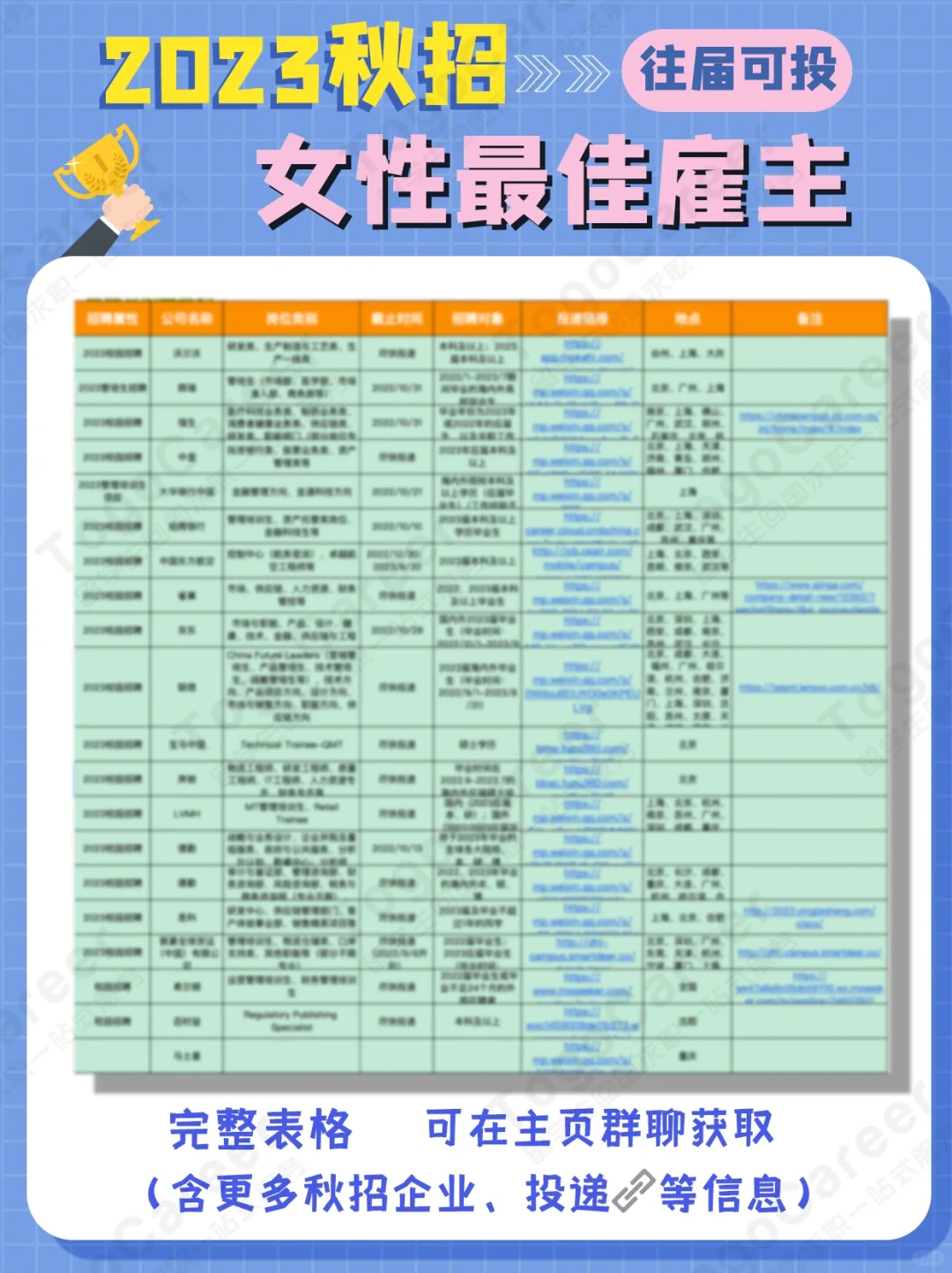 >23届秋招|女性最佳雇主招聘🔥附投递🔗