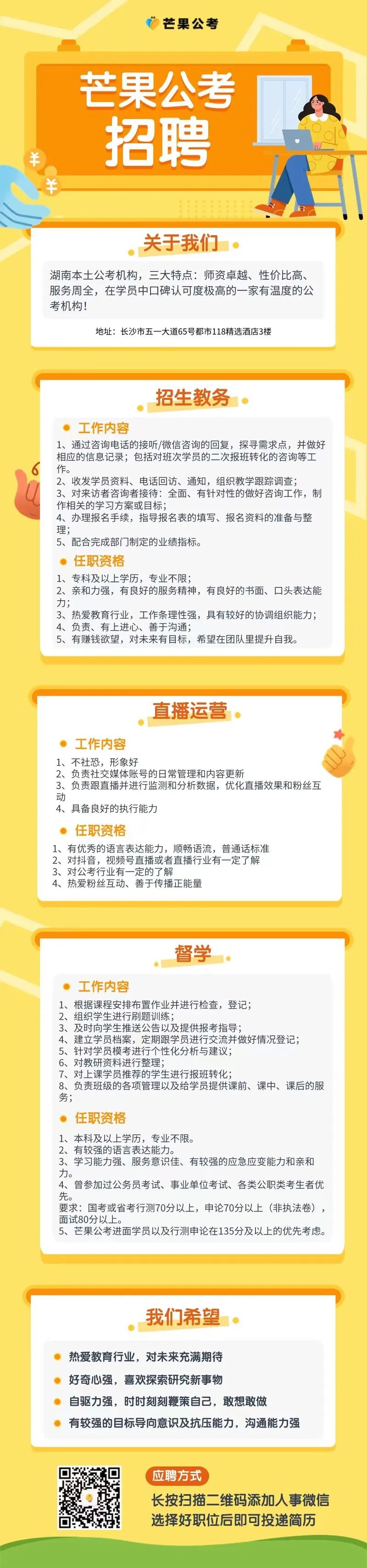 >芒果公考招聘!多个岗位缺人!职等你来~
