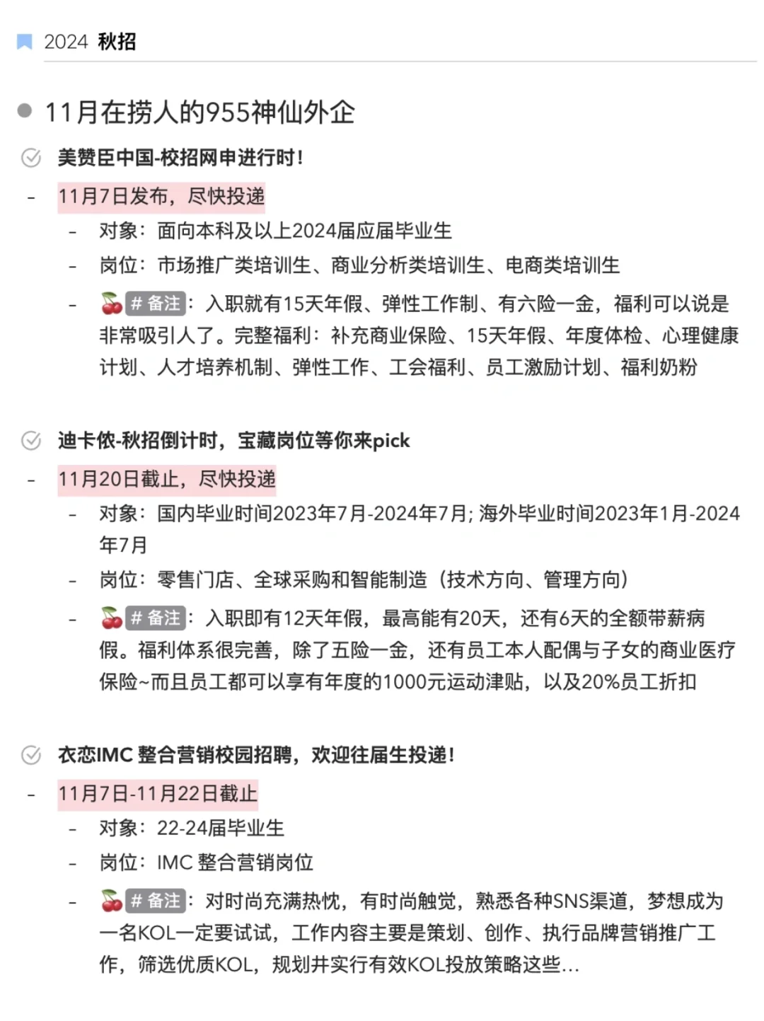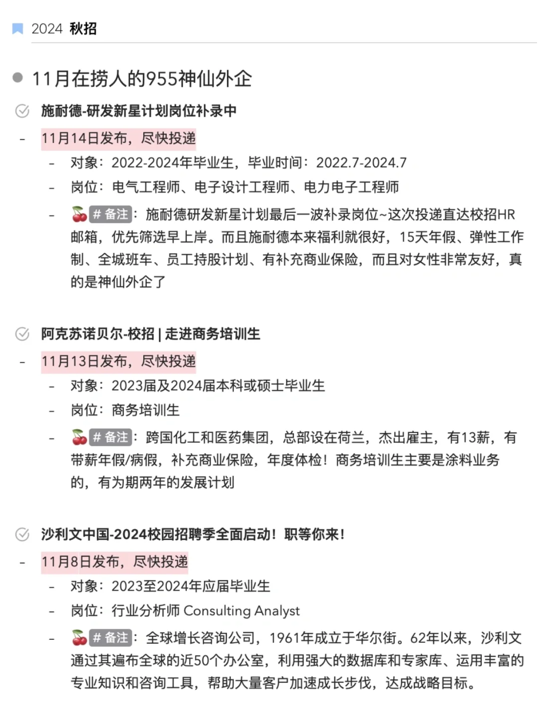 🔎11月秋招的投递表也给大家整理好放图4了