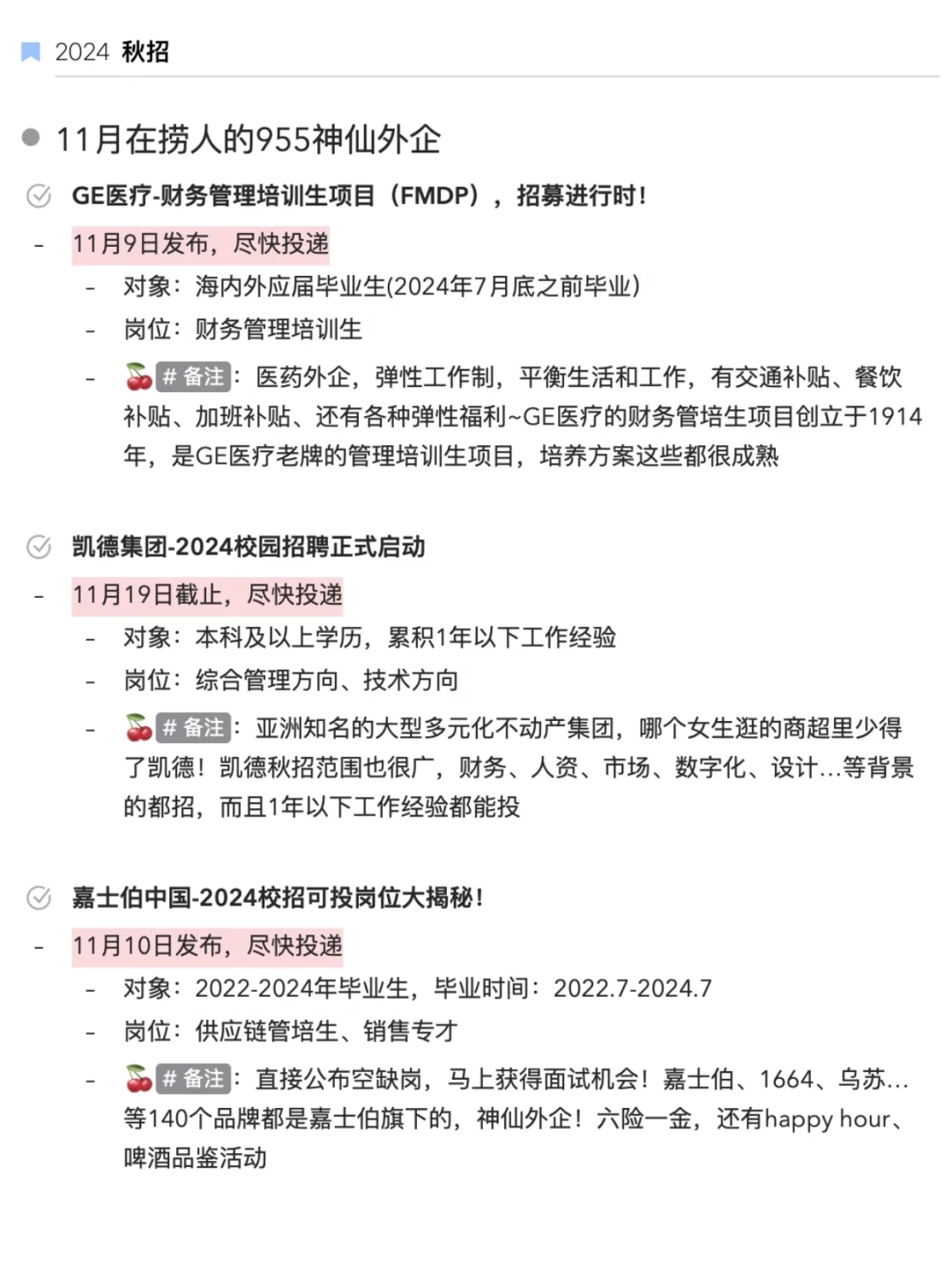 ☑️其他的不多说,关于最近新开秋招的外企,已经给大家划好重点了↓