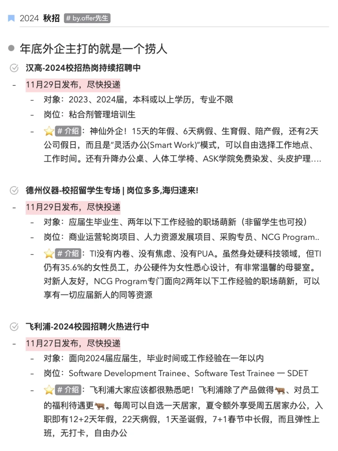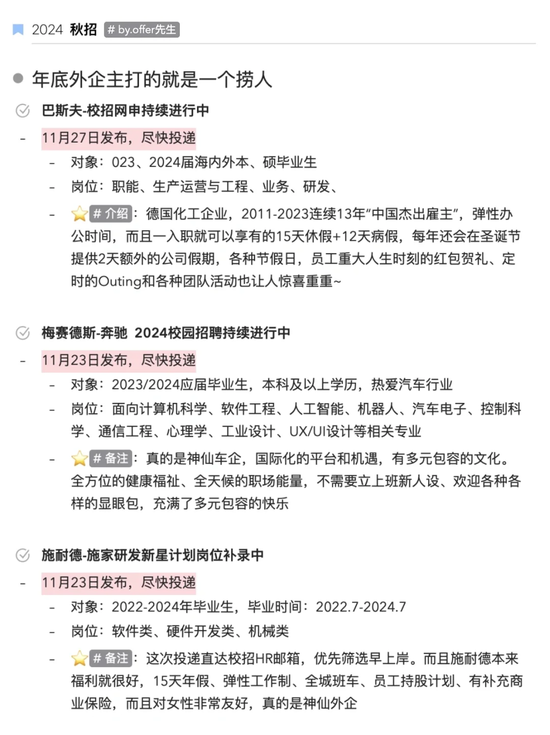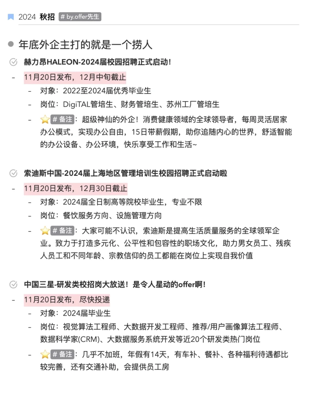 ☑️其他的不多说,关于最近新开秋招的外企,已经给大家划好重点了↓
