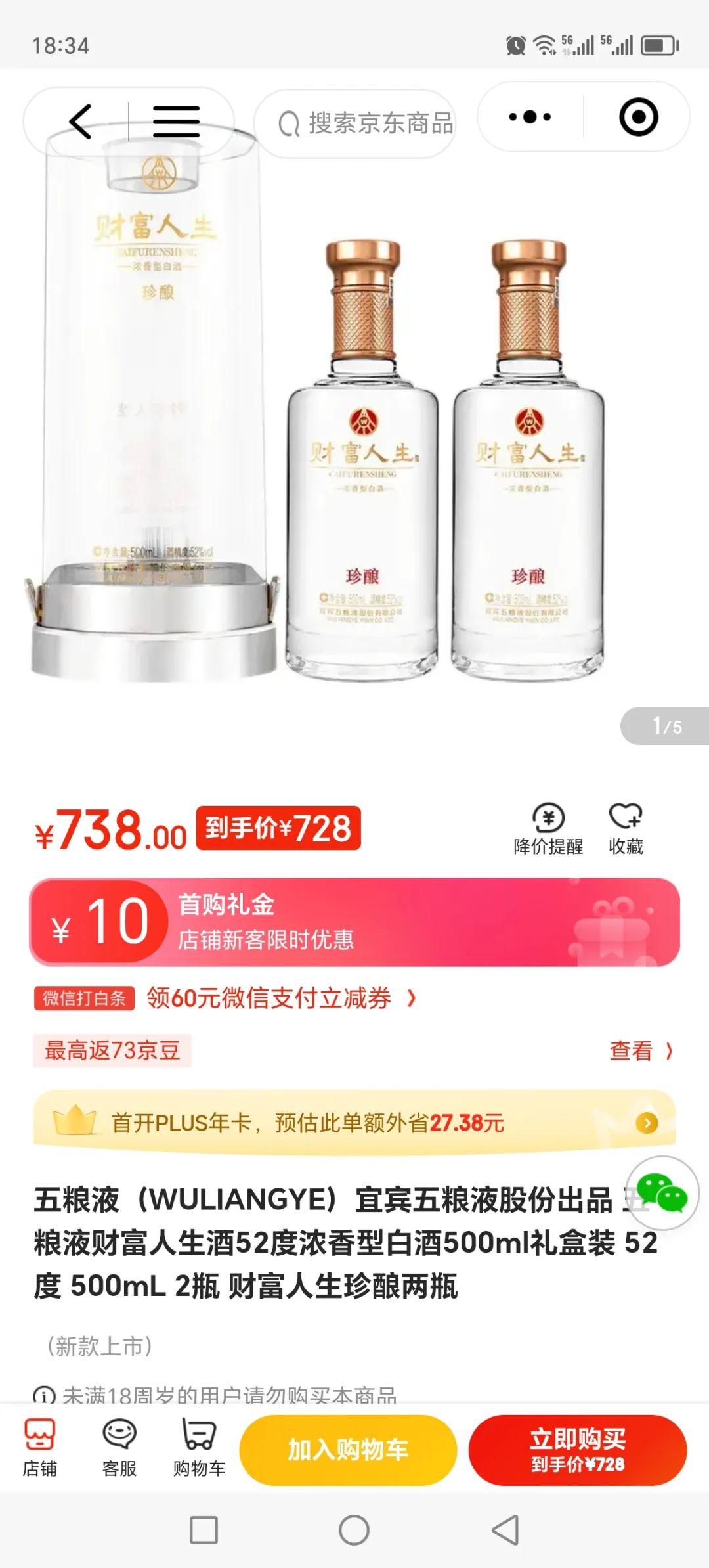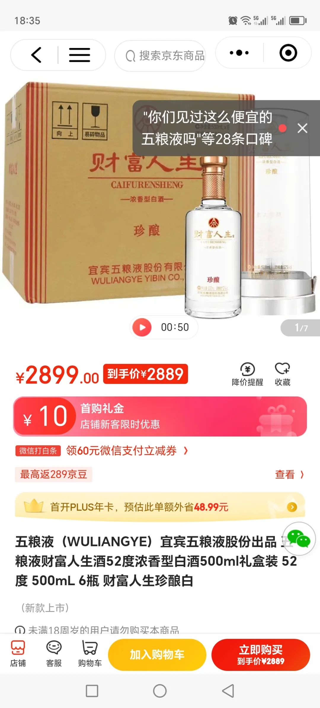 转让过年剩余一箱半五粮液财富人生珍酿52度500ml白酒,京东售价一箱2800元,现在200元一瓶处理。