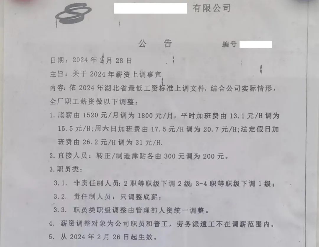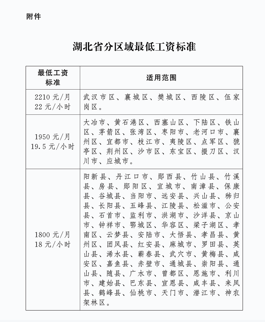 依据《湖北省人民政府办公厅印发关于调整全省最低工资标准的通知》,2024年2月1日起,全省最低工资标准调整。我市全日制就业劳动者月最低工资标准为1800元,小时最低工资标准为18元。