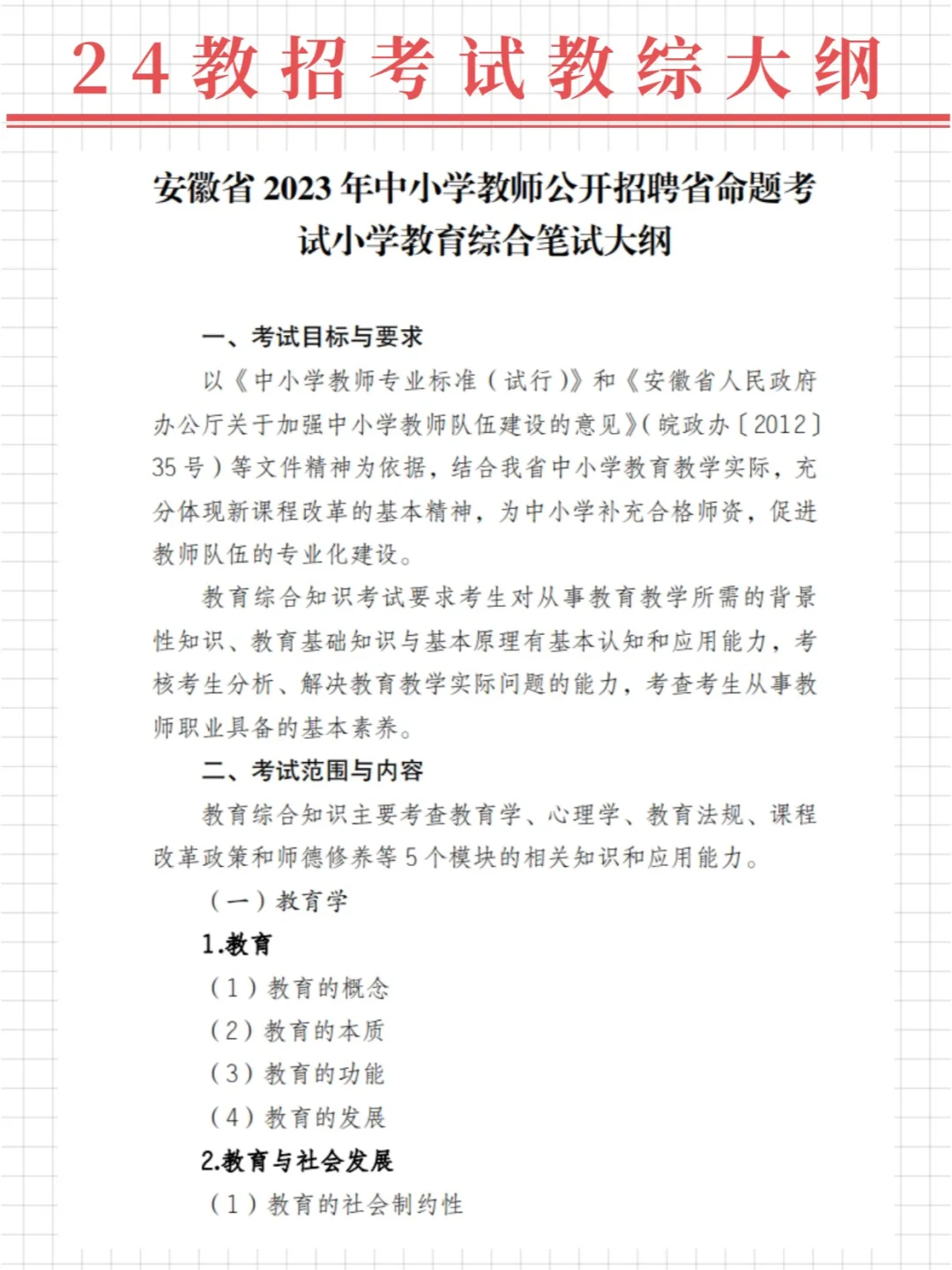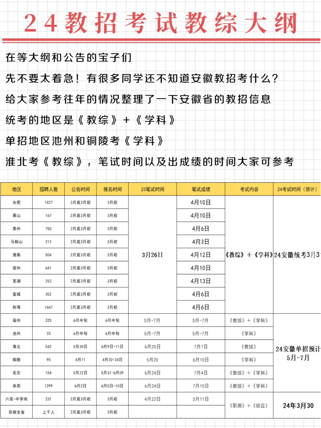 >安徽教招公告时间出成绩时间(附教综大纲)