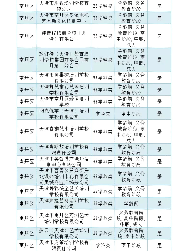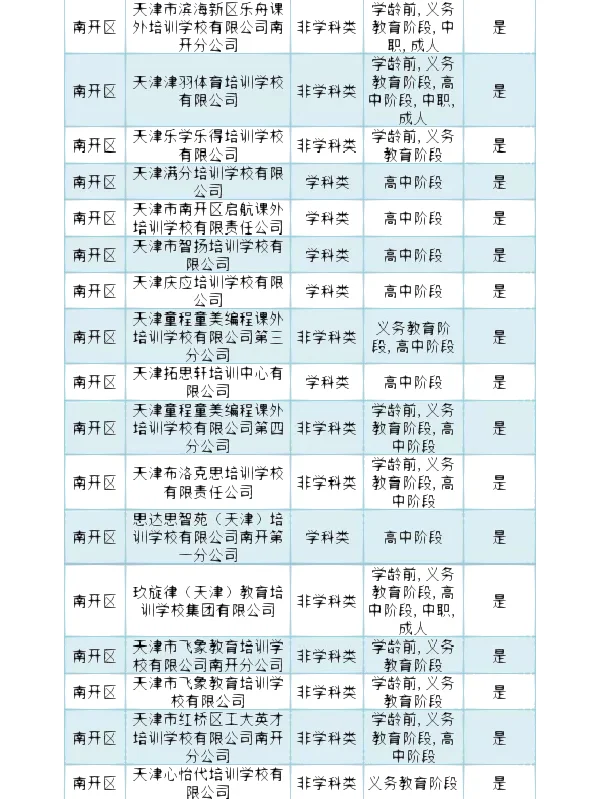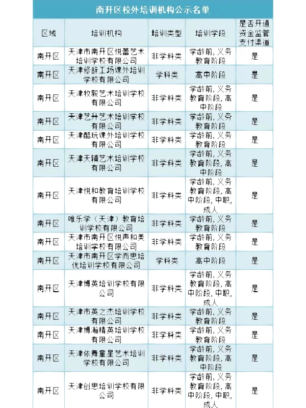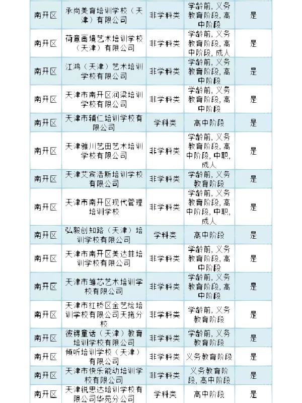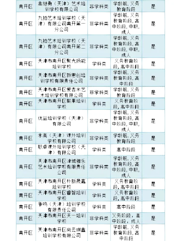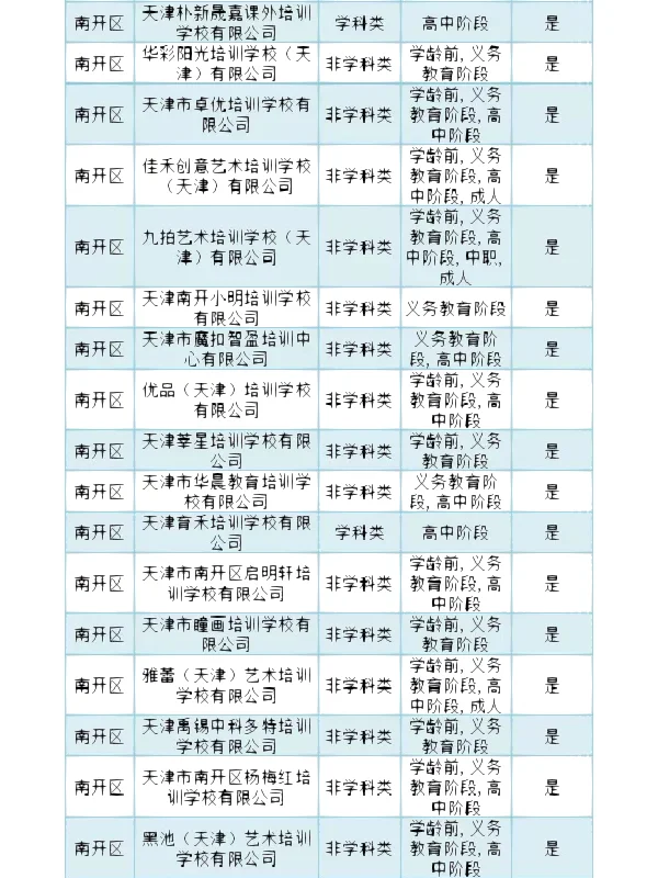 >南开区 校外培训机构白名单