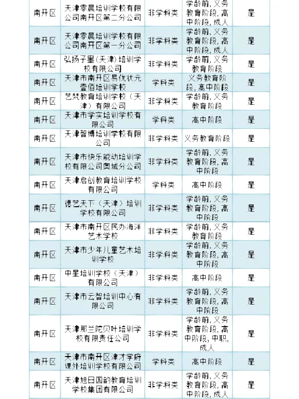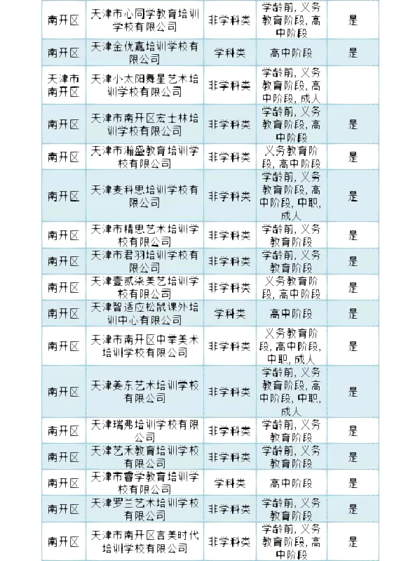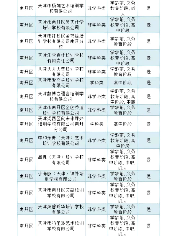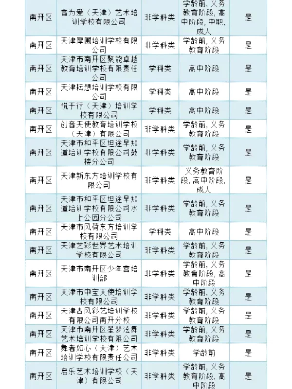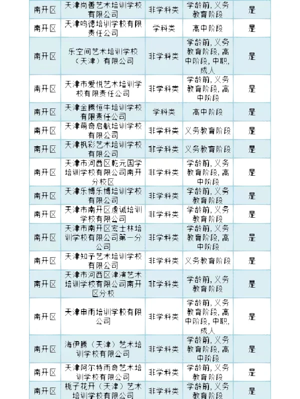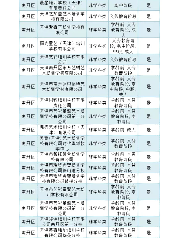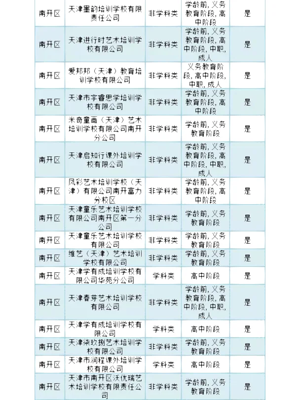 >南开区 校外培训机构白名单