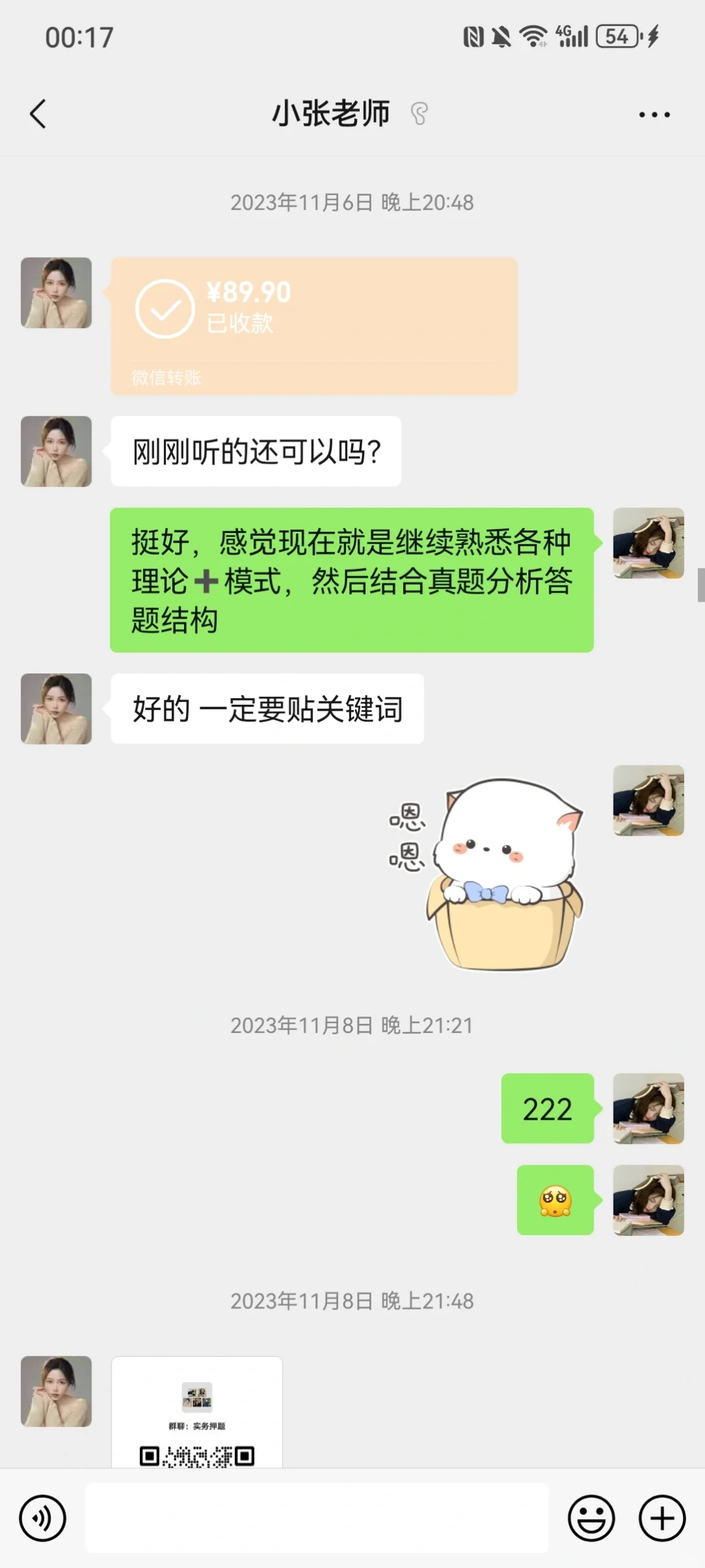 三四五月份一直都是在看书,超级重点,因为学校课很多,所以进度不快。期间有报名社工小张老师的学霸自习室,每天都会出一道题练习,会有老师和上岸学姐批改,非常建议大家报名,不是很贵,每个月就三四杯奶茶的价格,练习期间要根据老师的评语不断反思,润色自己的内容。