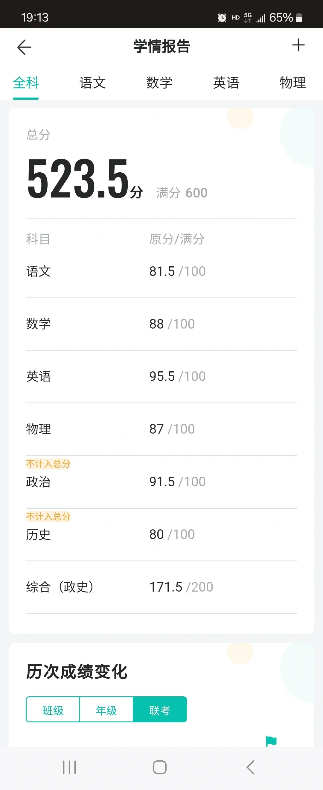 南开8上期末成绩终于出来了