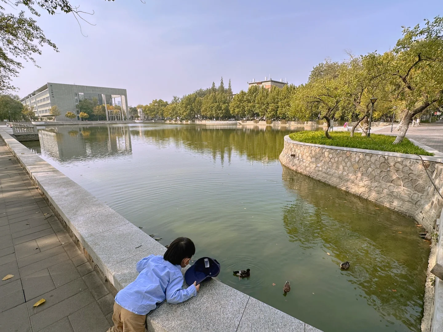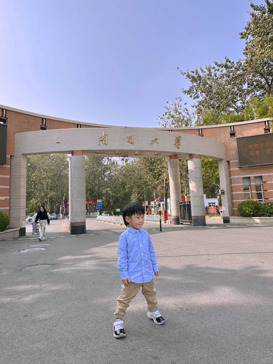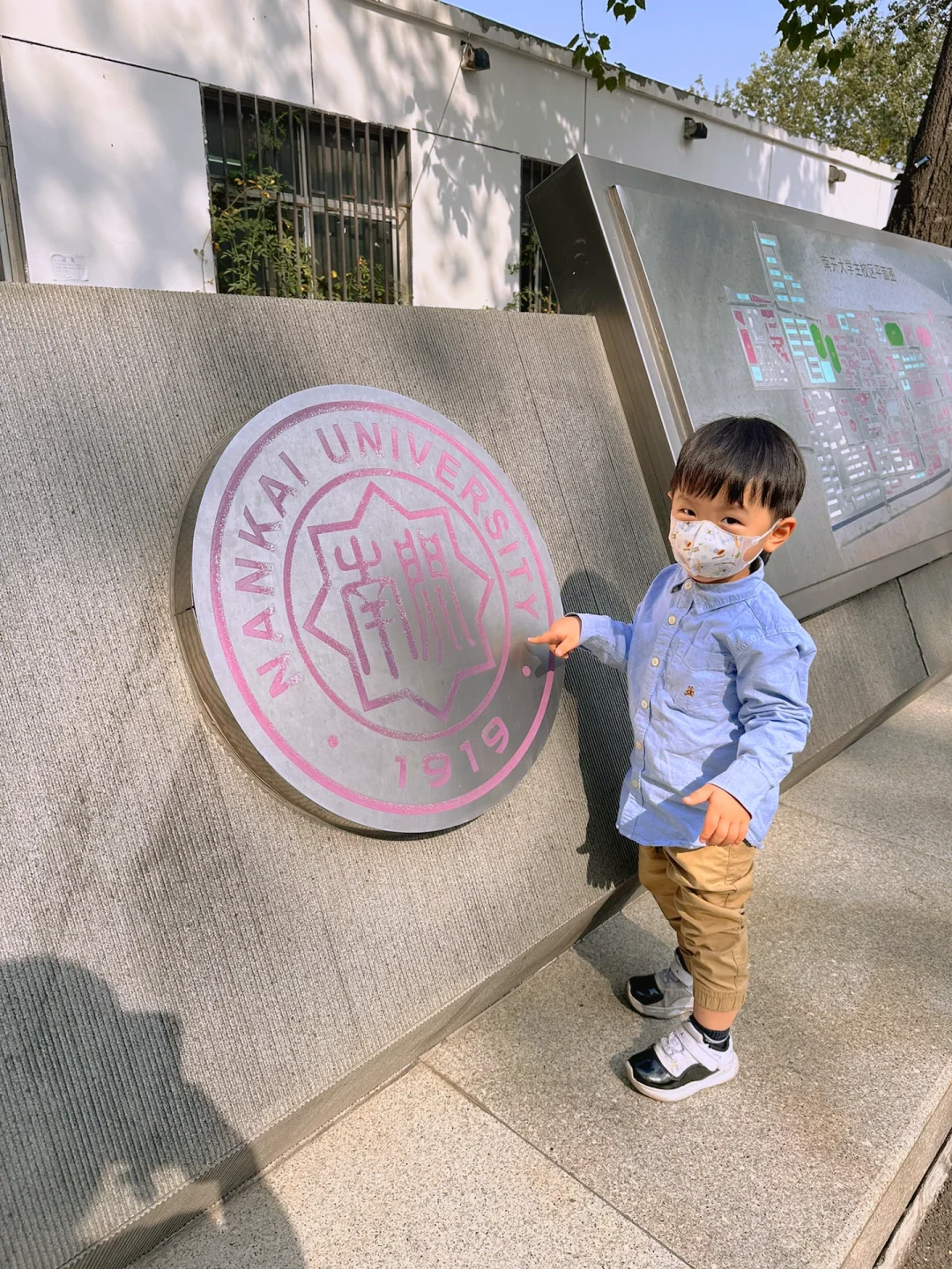 10.15刚到天津时就想着带娃去南大参观,都是说需要找在校生提前一天预约、审批,今天下午抱着试试看的态度到了南大东门,门口有穿着紫色马甲的南大自愿者,上去询问了下,他们可以帮着约,大约约完等待了10分钟左右就通过审批紧接着入校参观了。