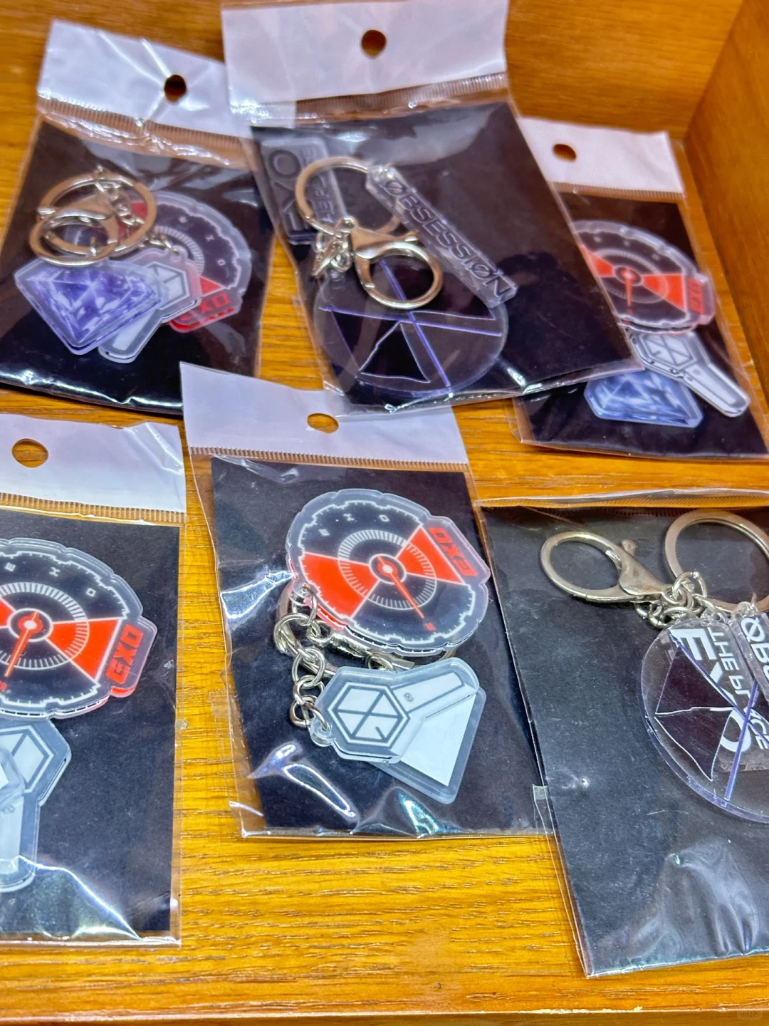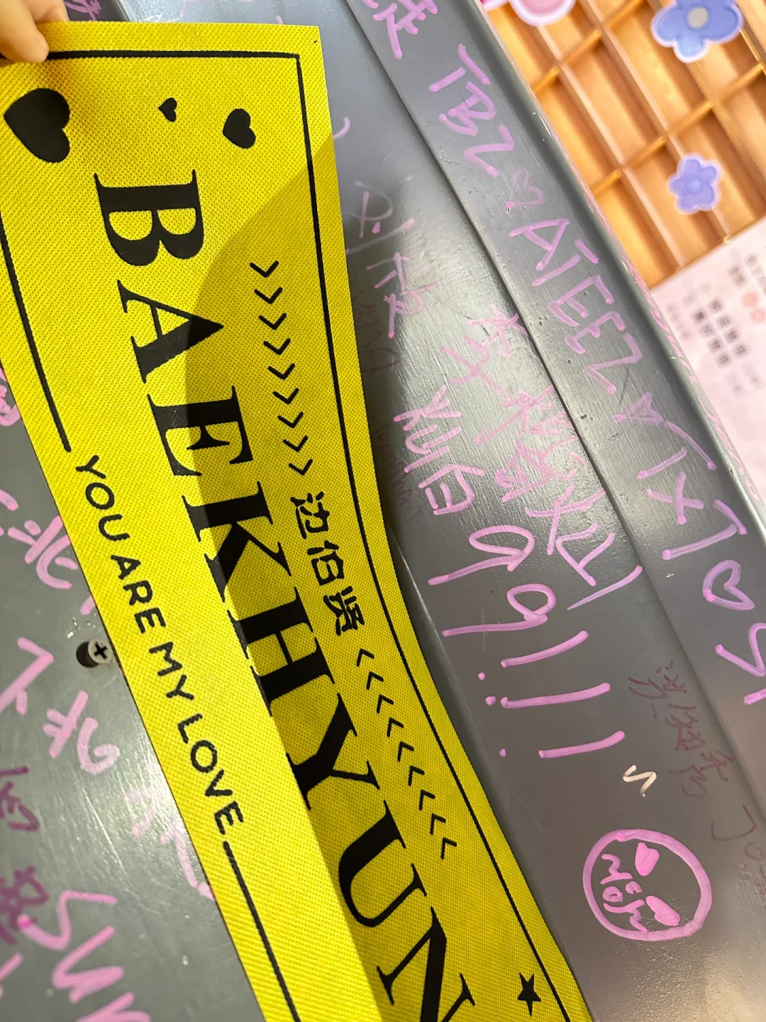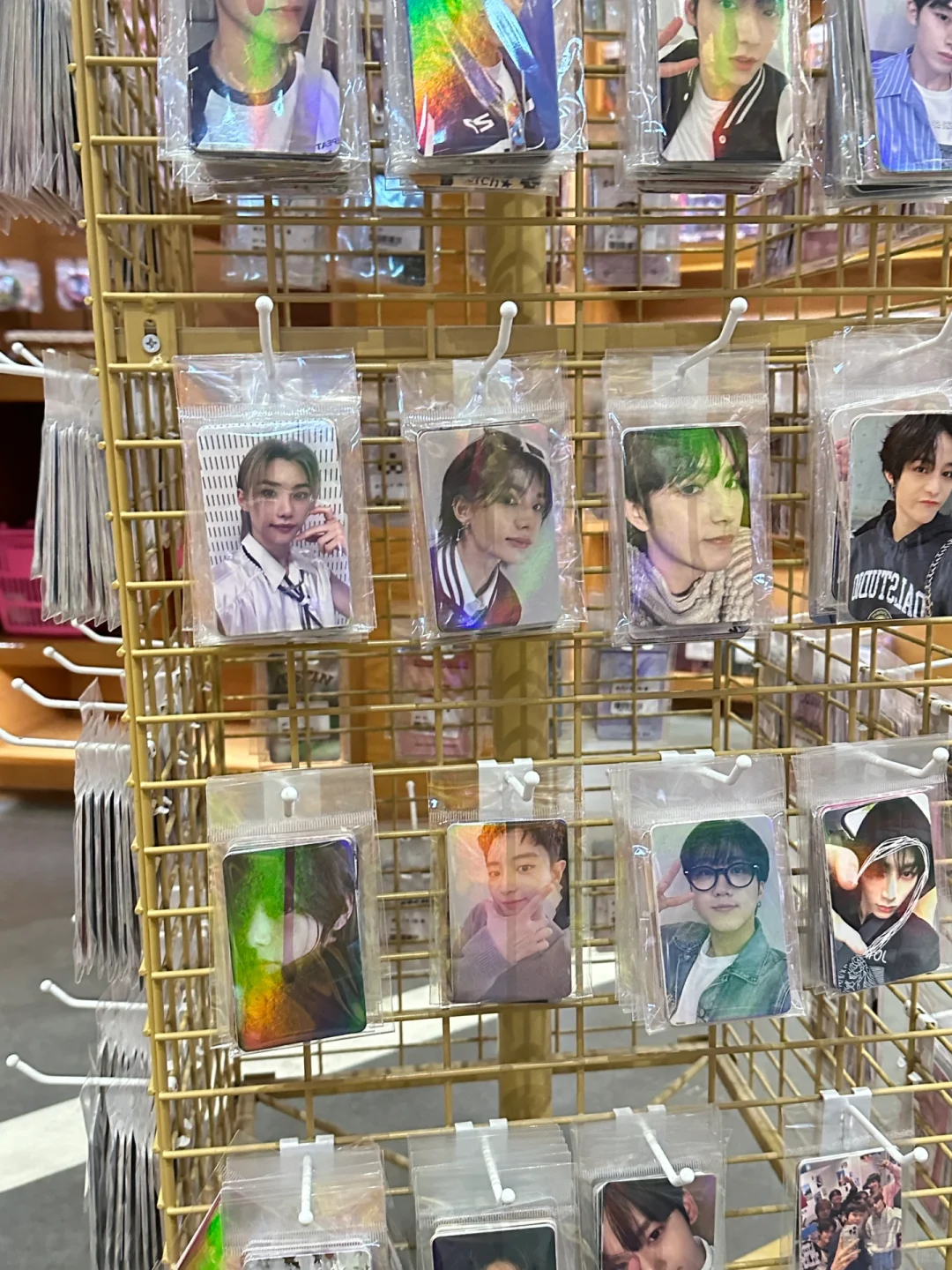 ➡️有韩国男团女团的海报、亚克力立牌、应援棒挂件、贴纸、手幅、手机支架等,内娱的也有,但是相对较少。
