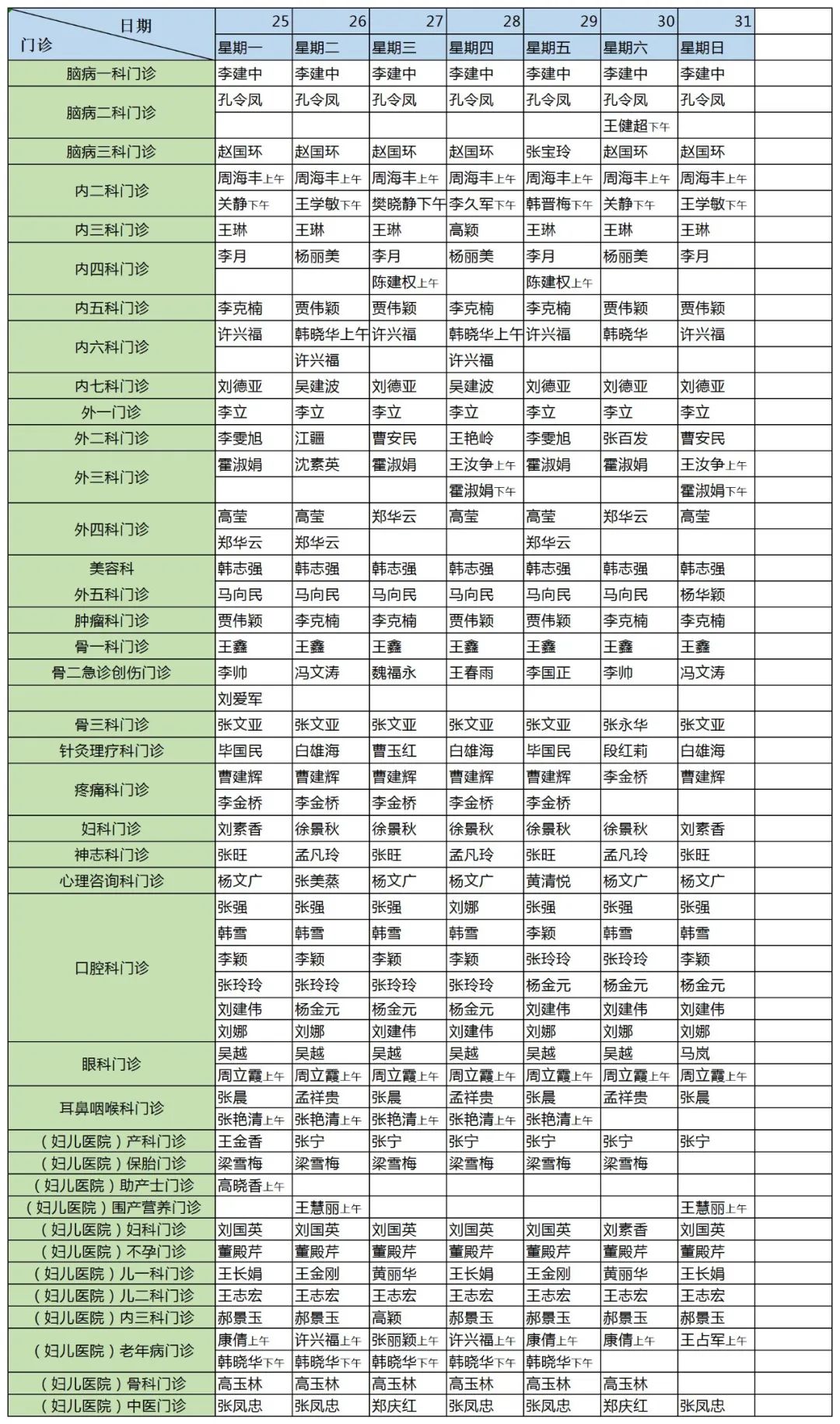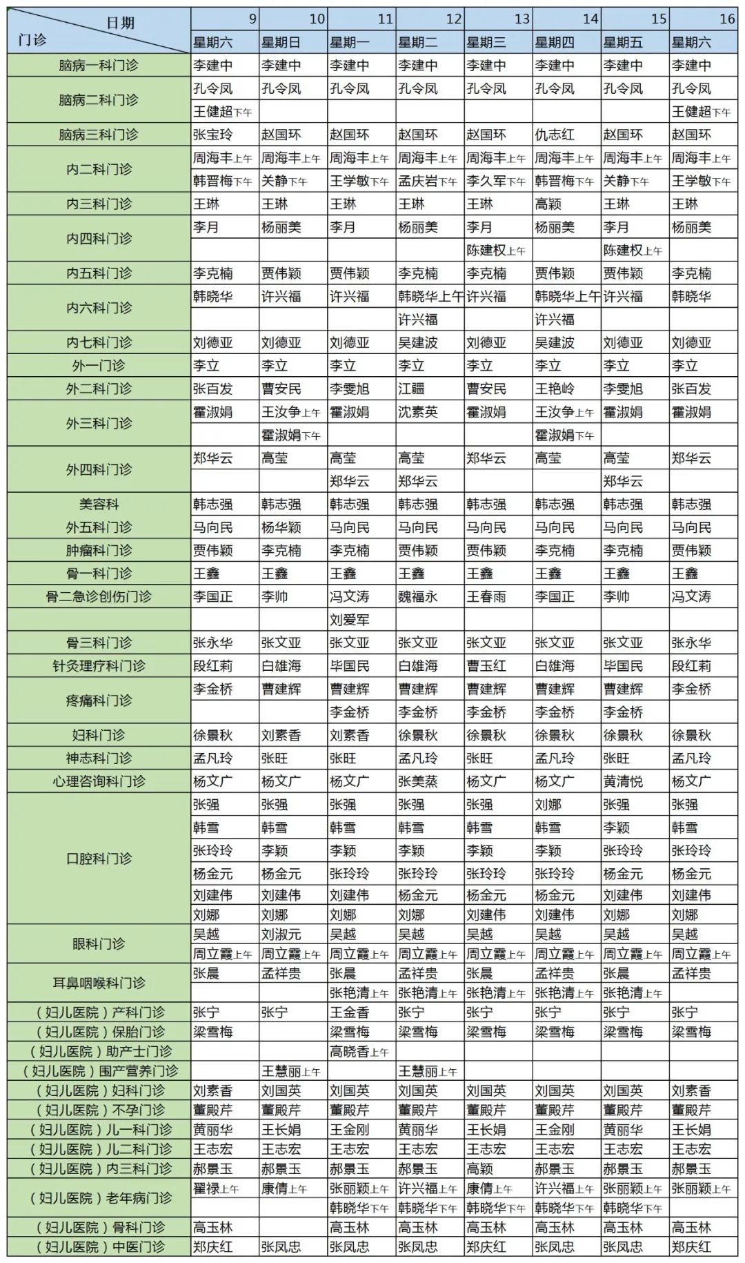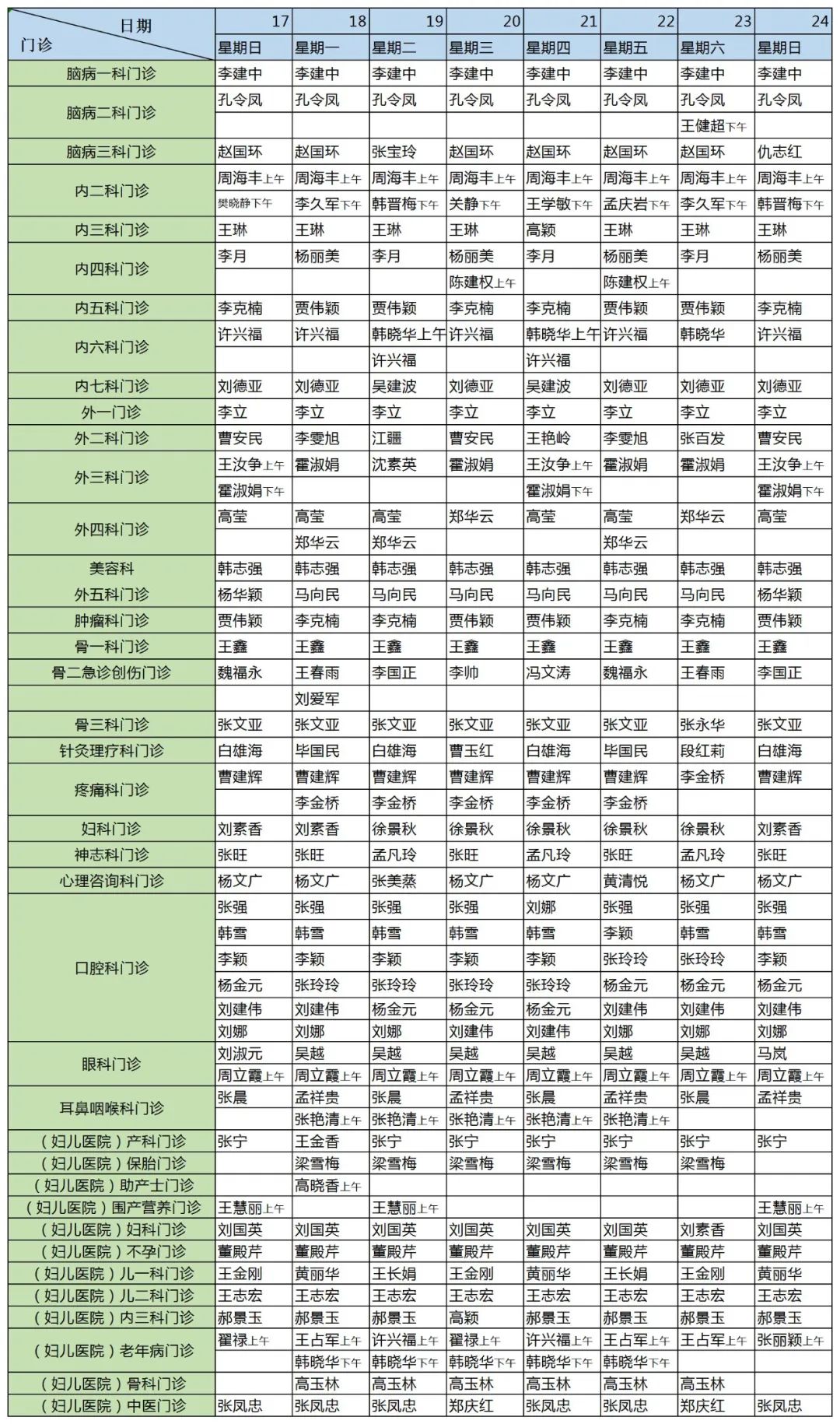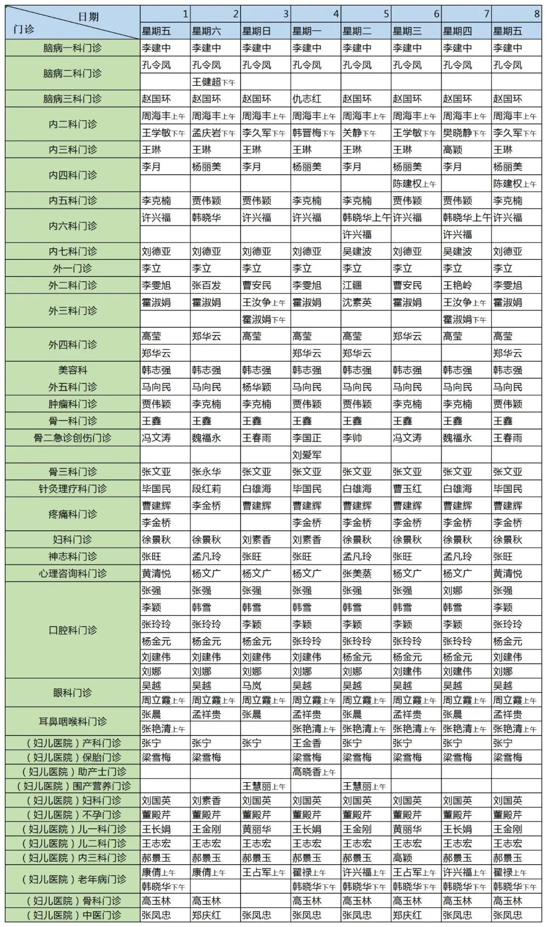(注:出诊安排有上午和下午之分,请提前拨打预约电话以便确认出诊的医生)