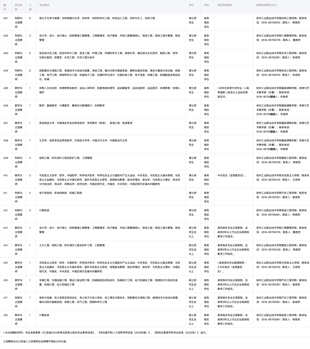 徐州工业职业技术学院是省教育厅主管的全额拨款事业单位,位于徐州市鼓楼区襄王南路1号。为更好地选拔优秀适岗人才,充实人才队伍,优化师资结构,徐州工业职业技术学院现面向社会公开招聘优秀人才。根据《江苏省事业单位公开招聘人员办法》等规定,现将有关事项公告如下: