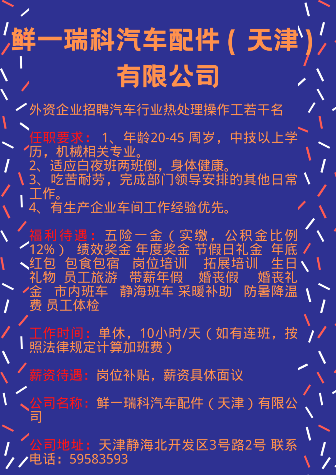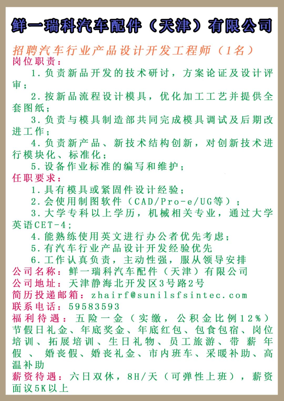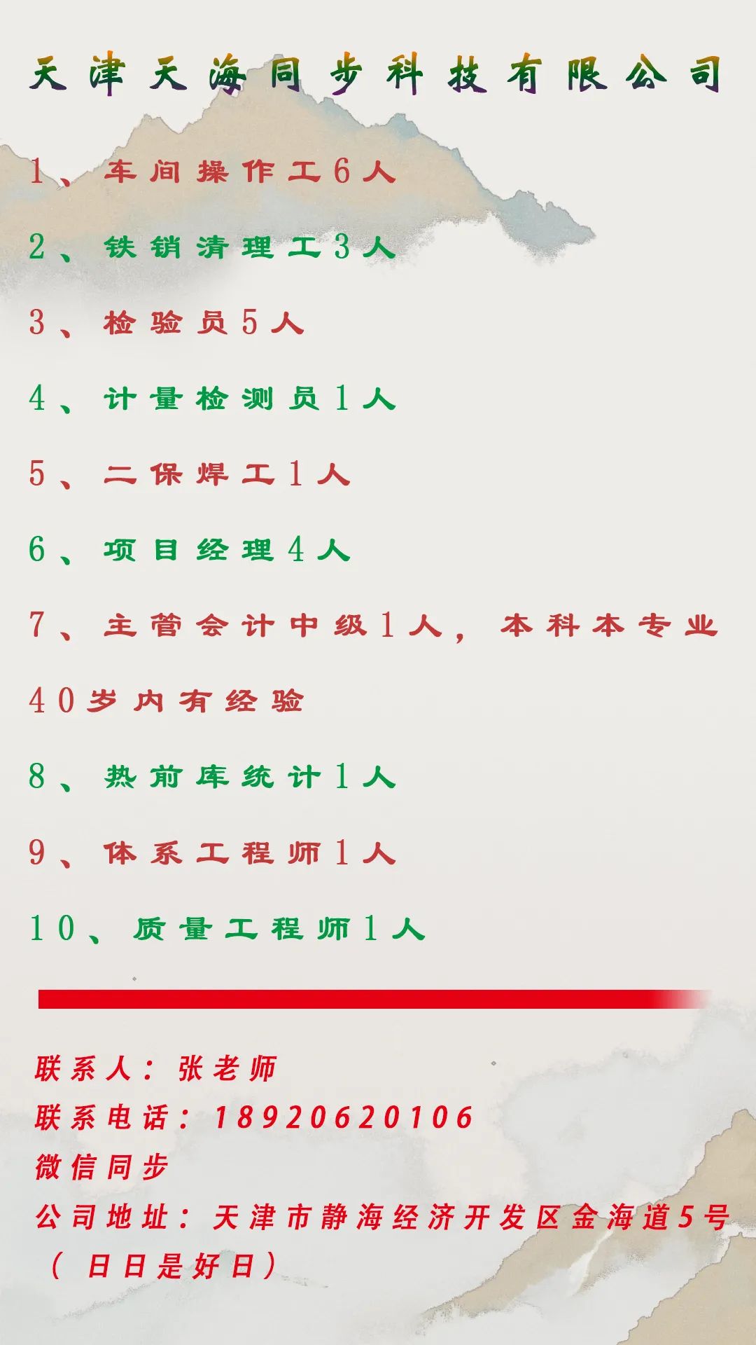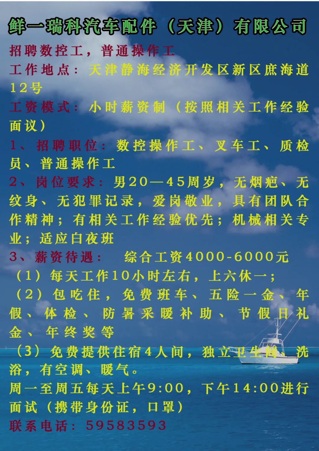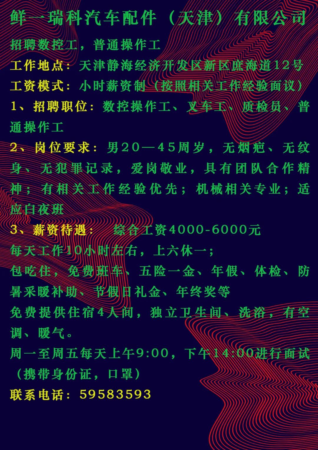 | 天津天海精密锻造有限公司 | 检验员1 数控车工15 包装工4 机修工1