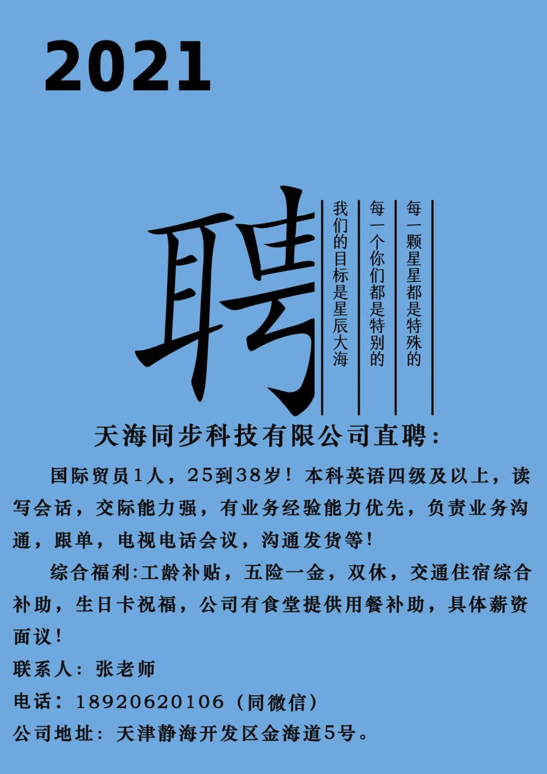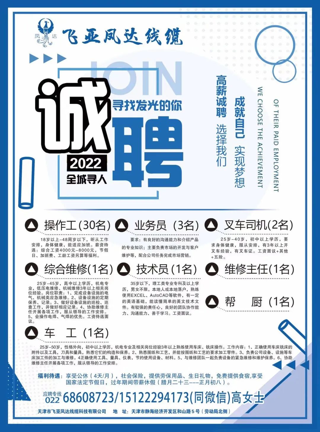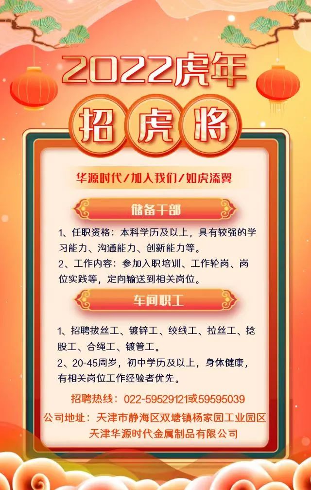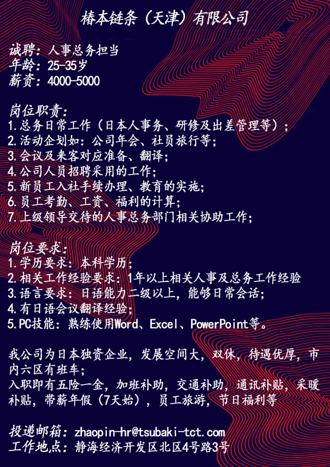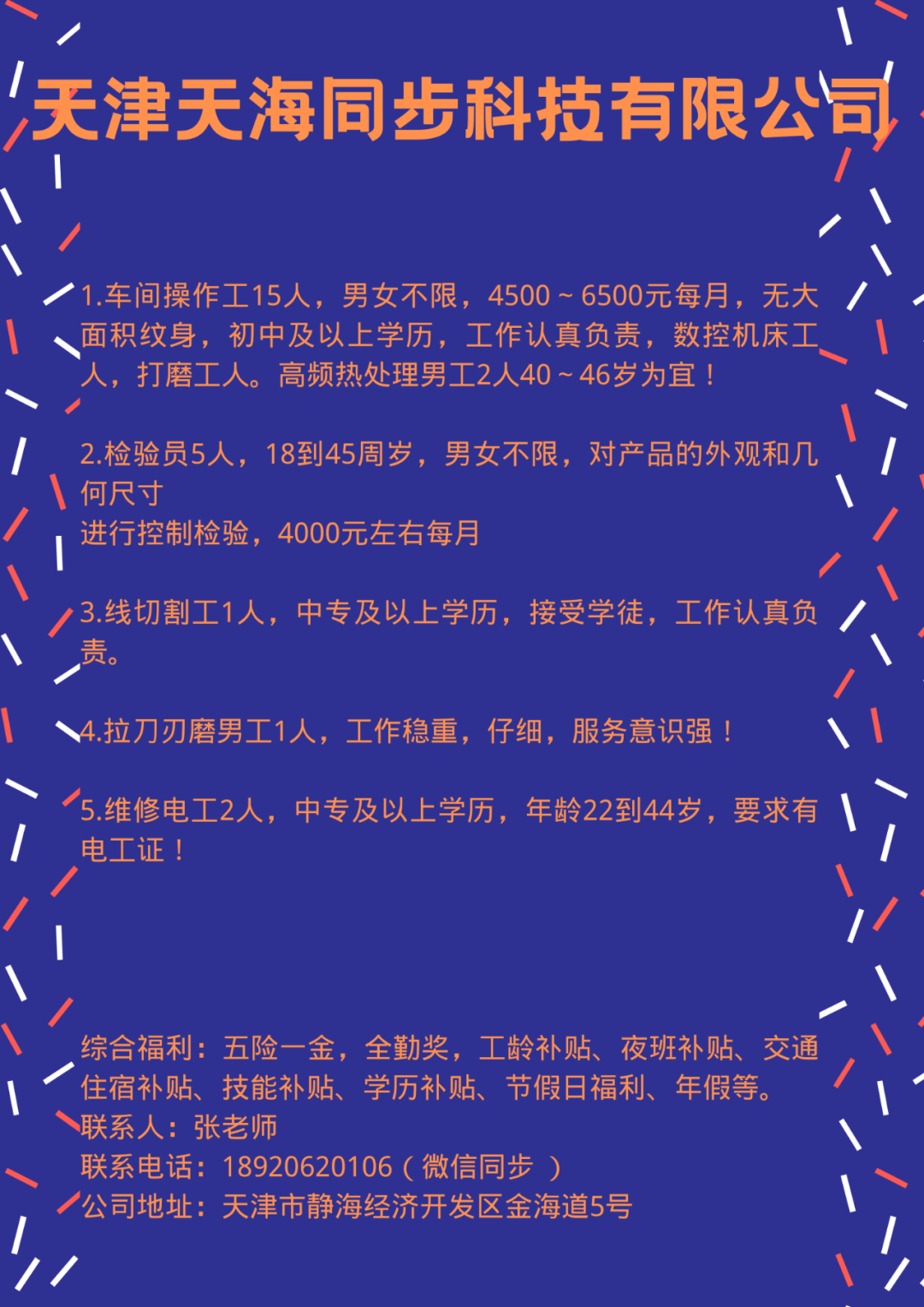 | 天津天海精密锻造有限公司 | 检验员1 数控车工15 包装工4 机修工1
