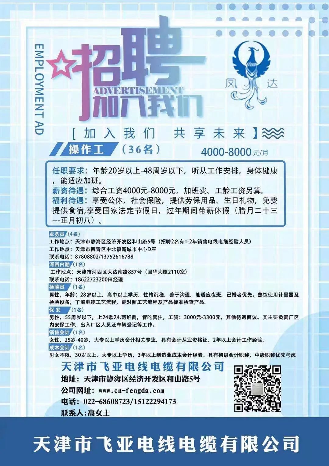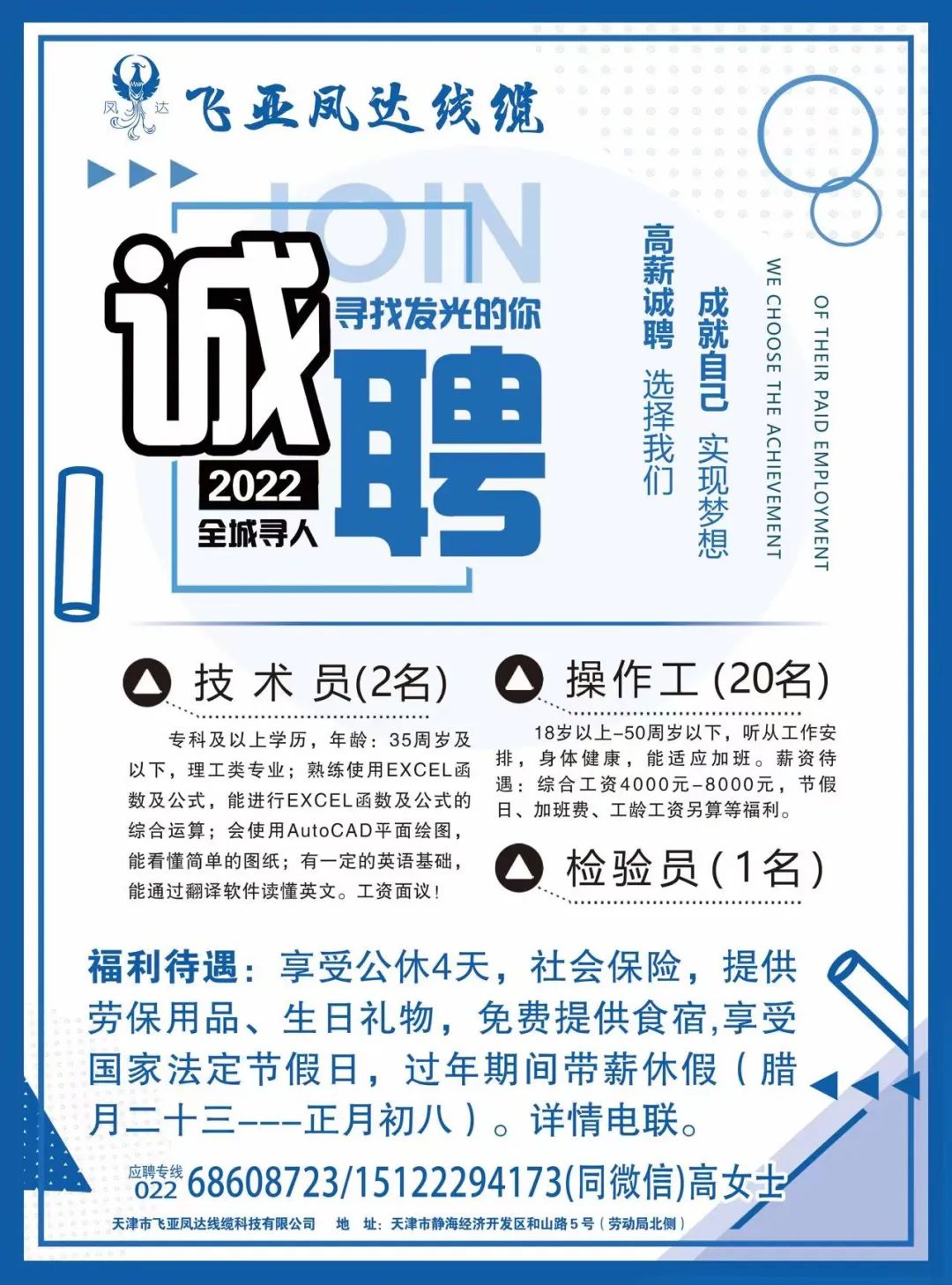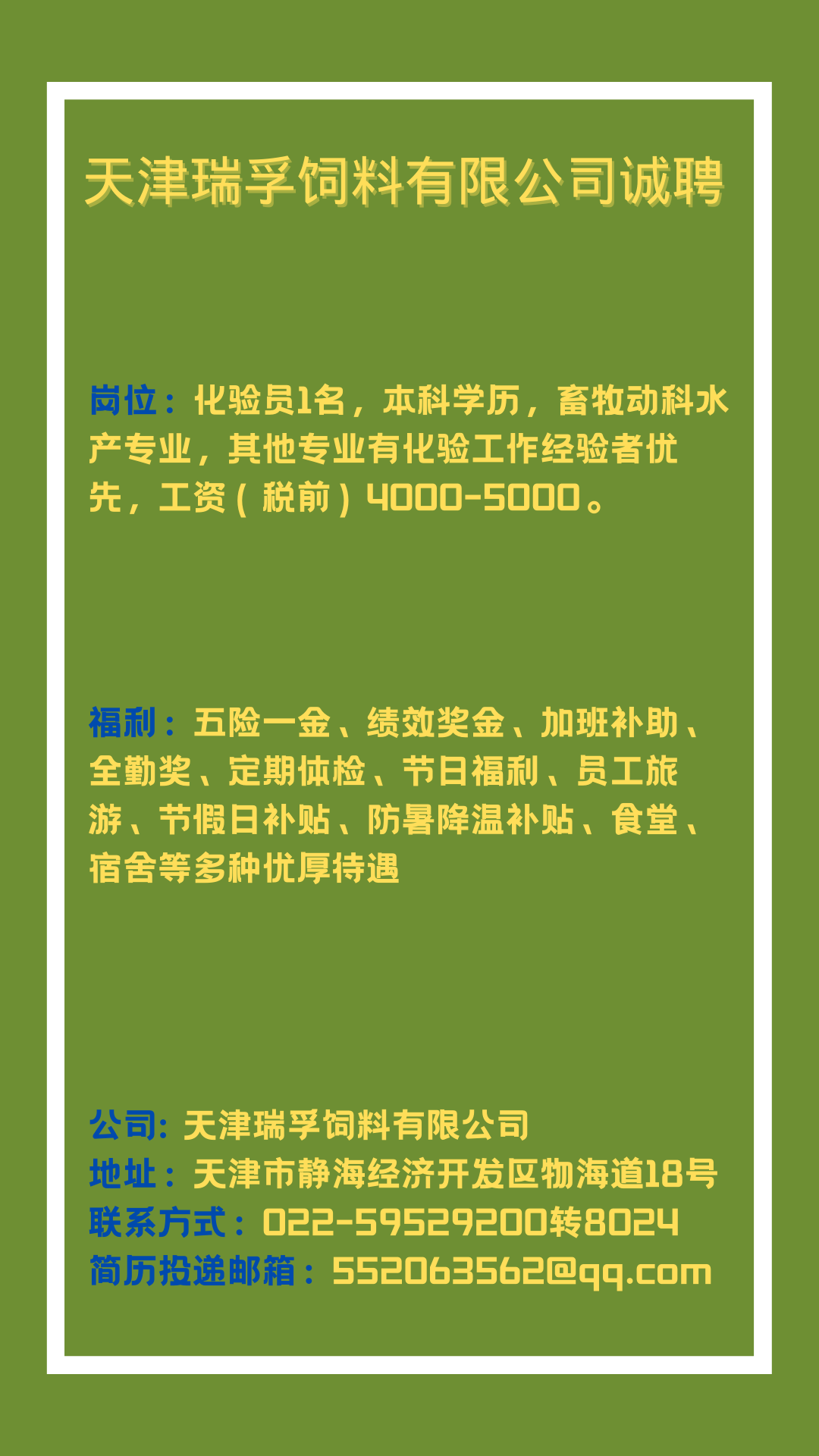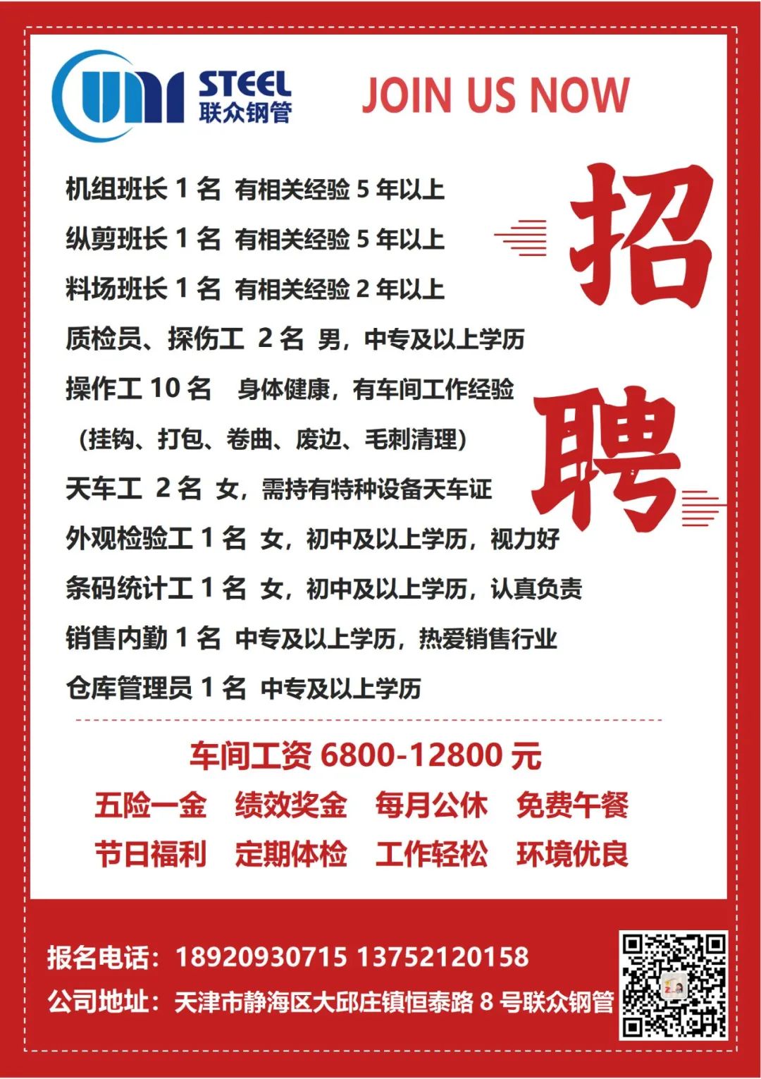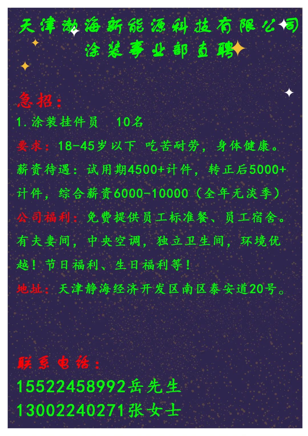 | 有防腐生产检验相关工作经验,月工资4000+年底奖金20000起+五险一金。 地址:天津市静海区蔡公庄镇工业区。 有意者联系:18649182875 邓女士 |