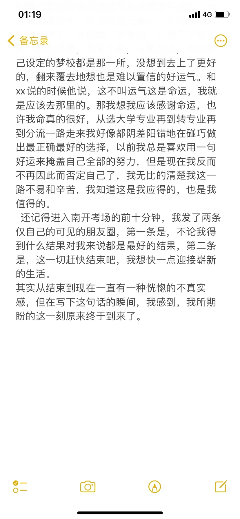 还记得进入南开考场的前十分钟,我发了两条仅自己的可见的朋友圈,第一条是,不论我得到什么结果对我来说都是最好的结果,第二条是,这一切赶快结束吧,我想快一点迎接崭新的生活。