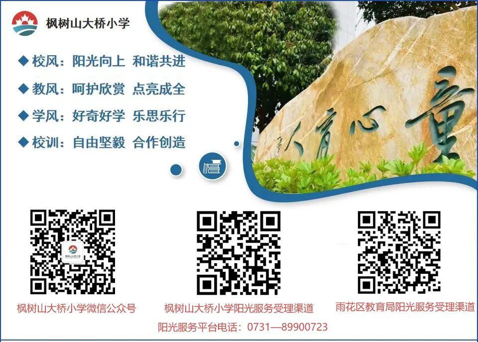 雨花区枫树山大桥小学为2009年新建的枫树山第二所分校,毗邻雨花区政府、武广高铁长沙站、地铁2号线,便利接通高速和机场。学校占地面积25亩校园,建筑面积为12211平方米。目前学生2744人,班级数56个,教师144人,是一支年轻化素质高的教师队伍。在枫树山小学党总支的领导下,学校以“让童心飞扬”为办学理念,管理方式创新务实,遵循教育本真规律,力争培养身心健康,品格健全,有个性有思想(创新)、有梦想有担当的现代小公民。