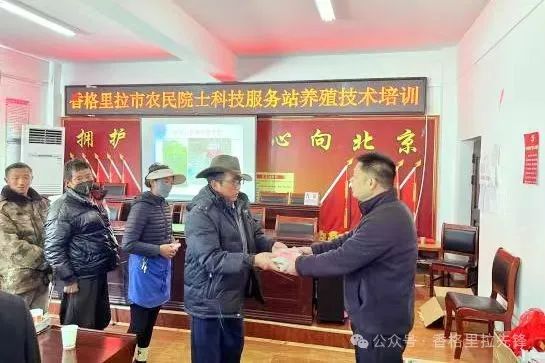 1月23日上午,香格里拉市农民院士科技服务站在香格里拉市建塘镇吉迪村村委会举行冬季牦牛养殖技术培训会,此次培训会针对吉迪村冬季寒冷、饲草缺乏、随意放养等问题,解决冬季牦牛饲养的技术困难,严玉霖教授深入浅出、具体实例为当地农牧民培训了“冬季牦牛饲养技术”和“牧草青贮技术”。课后农民院士科技服务站现场为培训学院发放了实用兽医器械一套,并详细地讲解了使用方法,为平时注射疫苗和药物提供了便利,有效地避免了动物疫病的交叉感染。