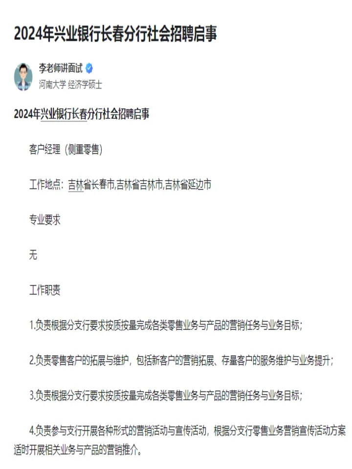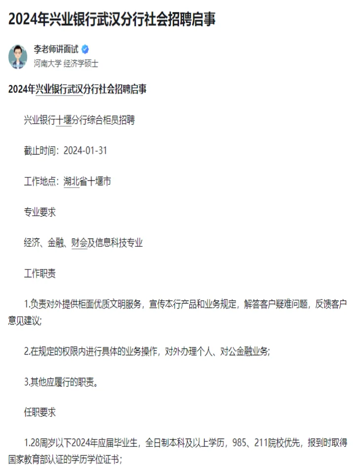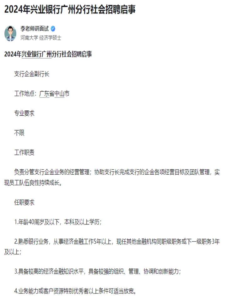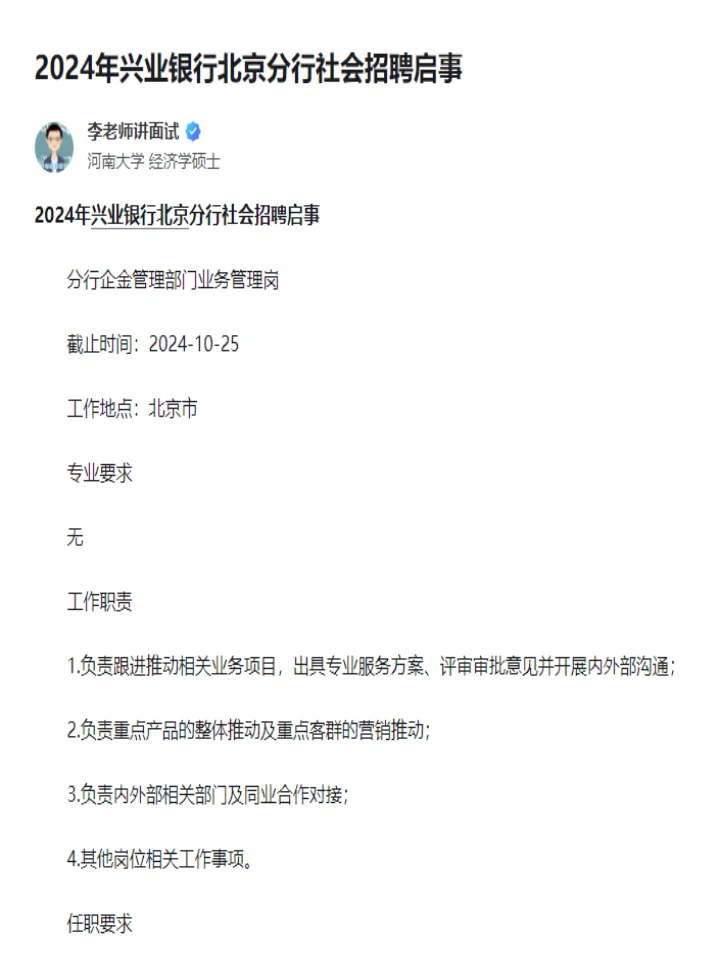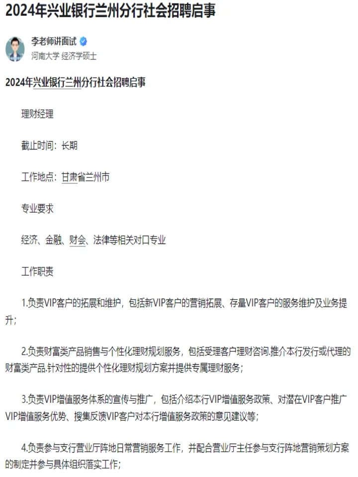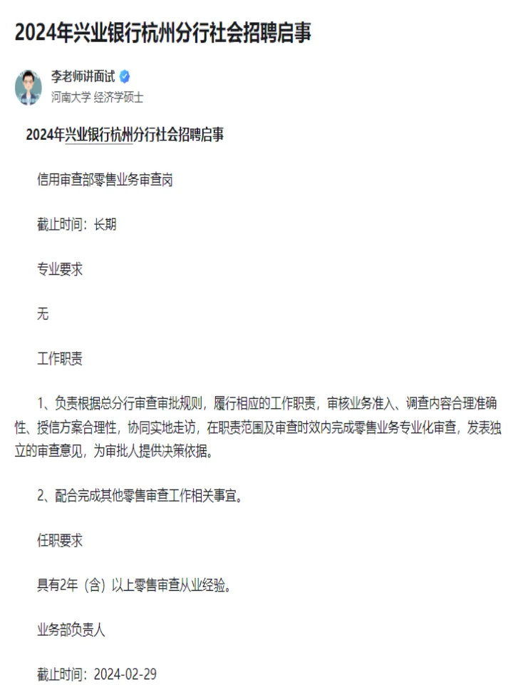 >2024兴业银行社会招聘