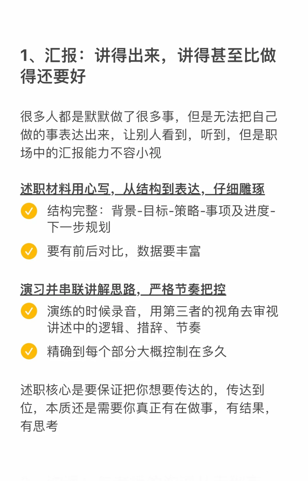 1、汇报:讲得出来,讲得甚至比做得还要好