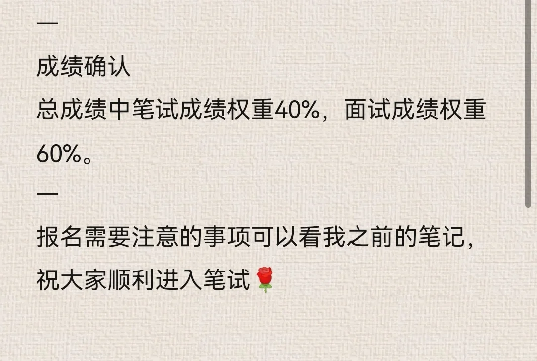 总成绩中笔试成绩权重40%,面试成绩权重60%。