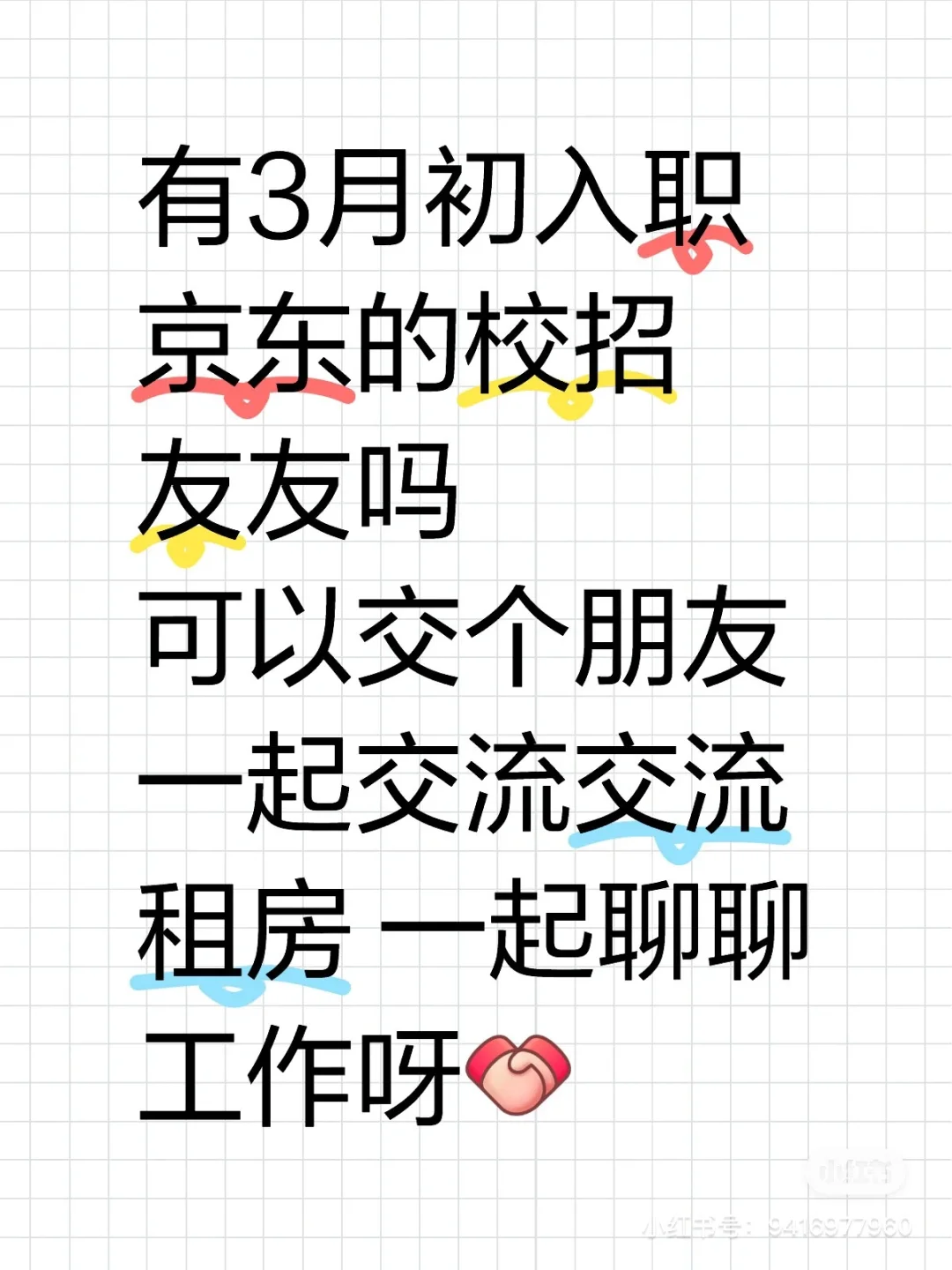 有3月初入职京东的校招友友吗?可以交个朋友 一起交流交流租房 一起聊聊工作呀🤭🤭
