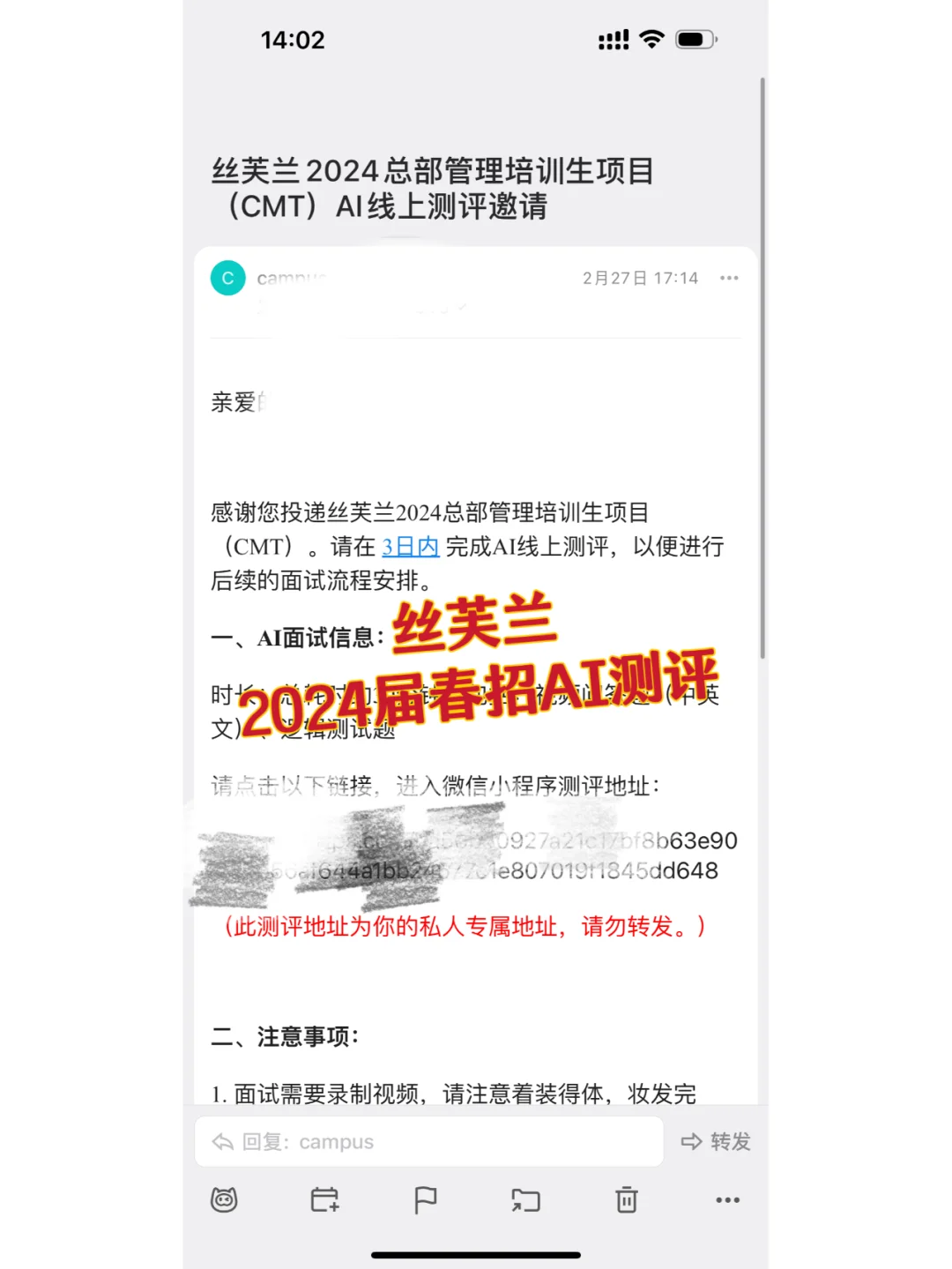 💄丝芙兰2024届春招测评已发,几乎秒收到~收到的小伙伴看过来啦