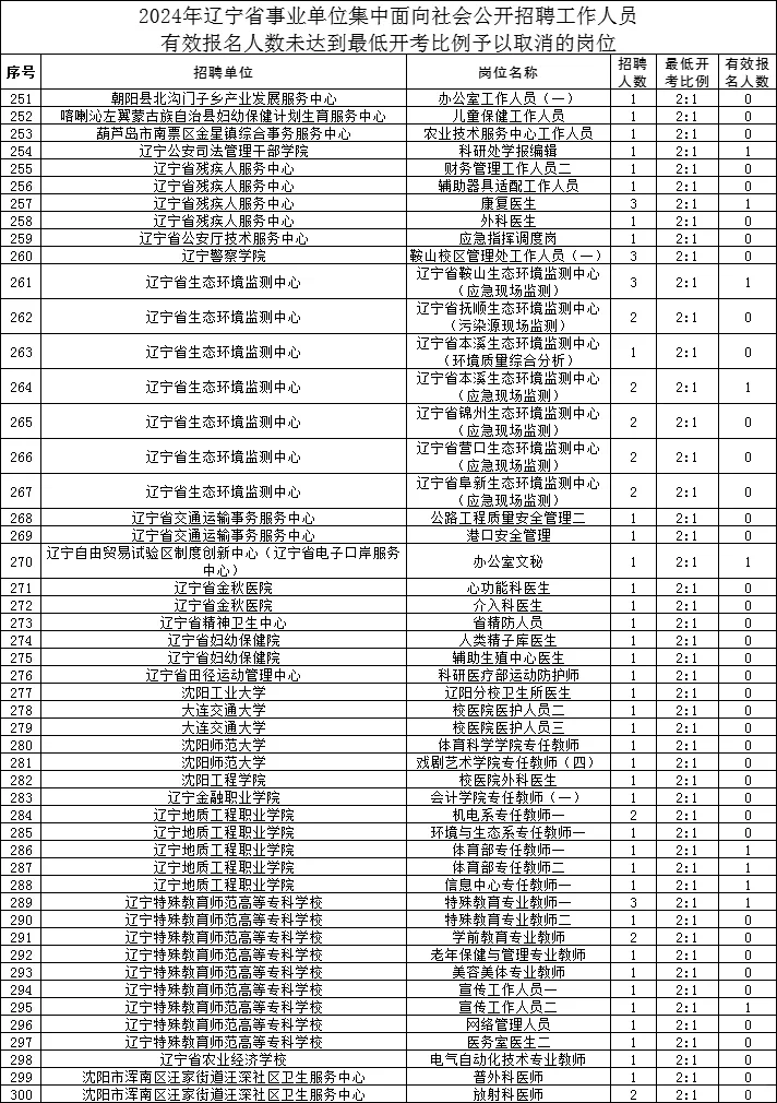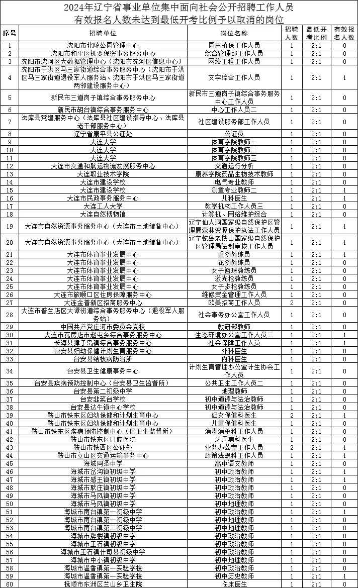 2024年辽宁省事业单位集中面向社会公开招聘工作人员部分招聘岗位取消的公告