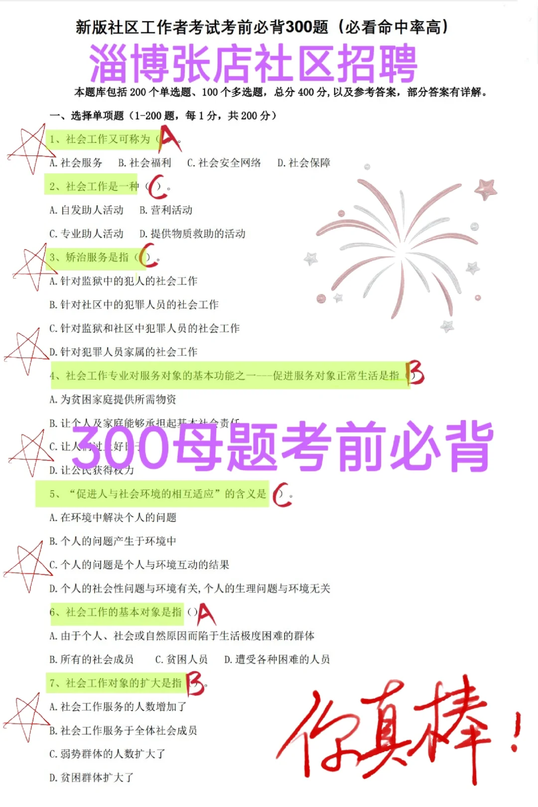 ✅淄博社区工作者往年镇题