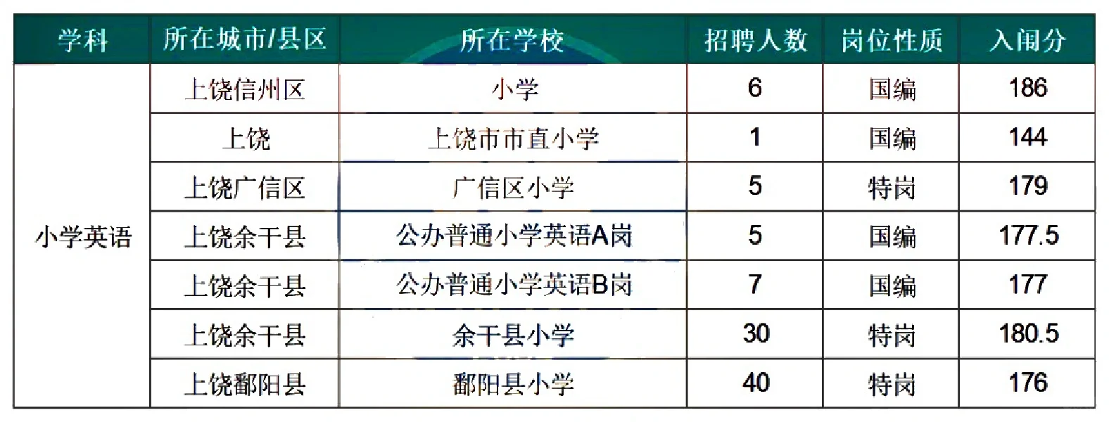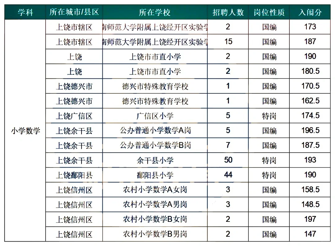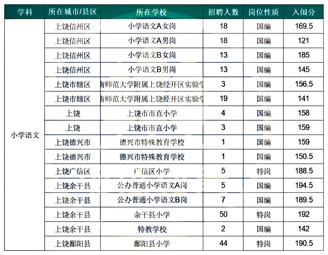 具体来看看23年上饶小学各学科的最低入闱分情况