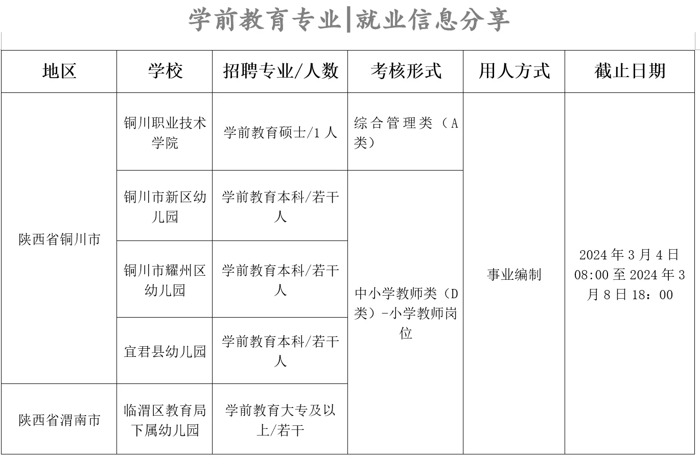 >学前教育进幼儿园||就业信息分享3.1